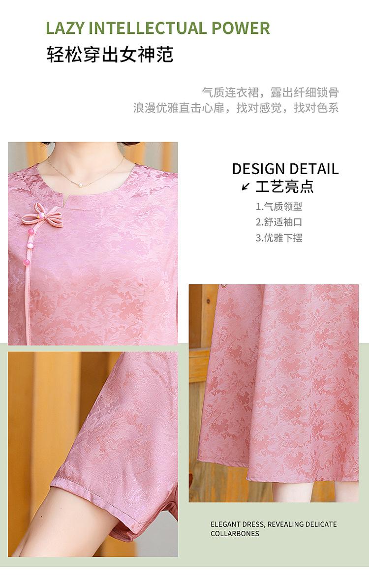 Compre Vestido de verão para mães de meia-idade e idosas, saia jacquard brilhante, gola redonda, manga curta, fivela borboleta, cintura justa, vestido estilo nacional emagrecedor no atacado no Joom.pro