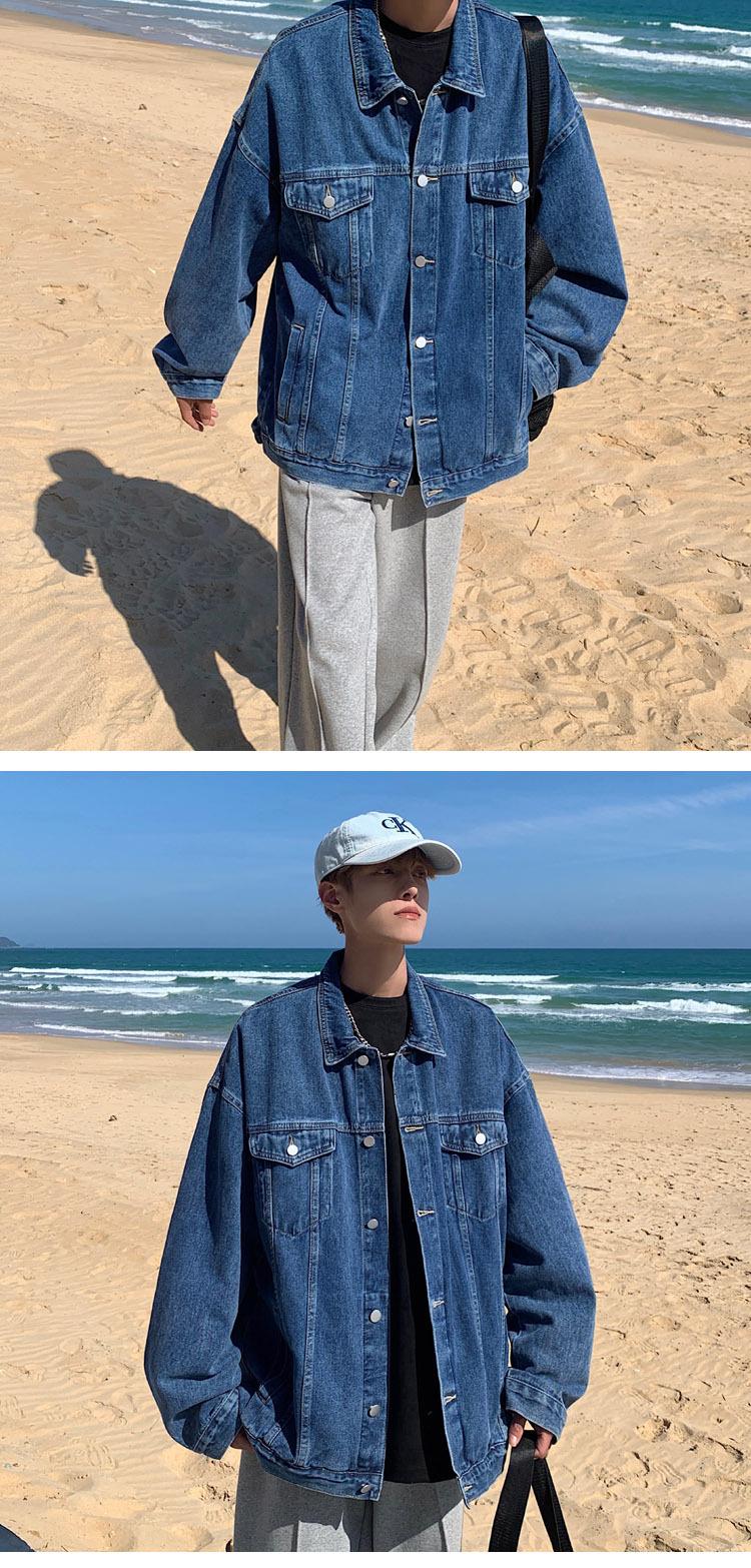 Compra Chaqueta vaquera americana de color liso para hombre, nueva chaqueta holgada de moda para estudiantes, primavera y otoño al por mayor en Joom.pro