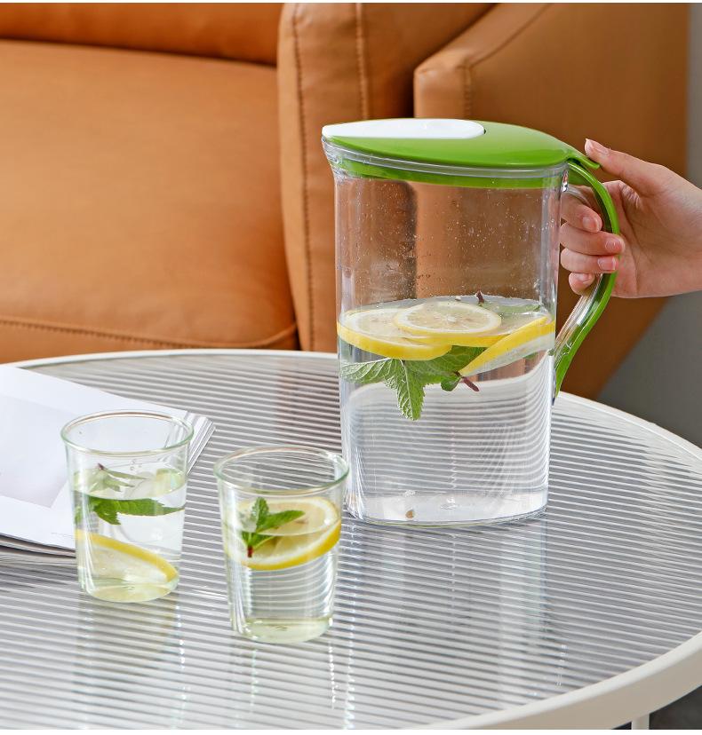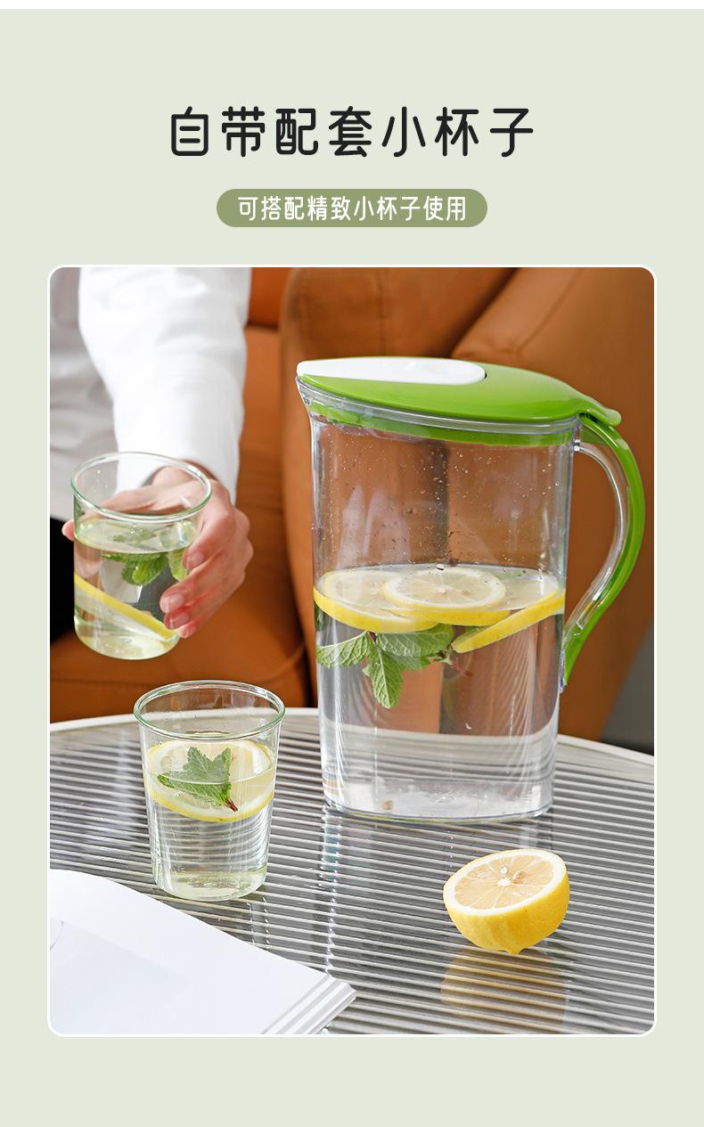Chaleira de água fria de plástico de grande capacidade, chaleira de hotel, conjunto de copos de água resistente a altas temperaturas, chaleira de suco para geladeira com 4 xícaras