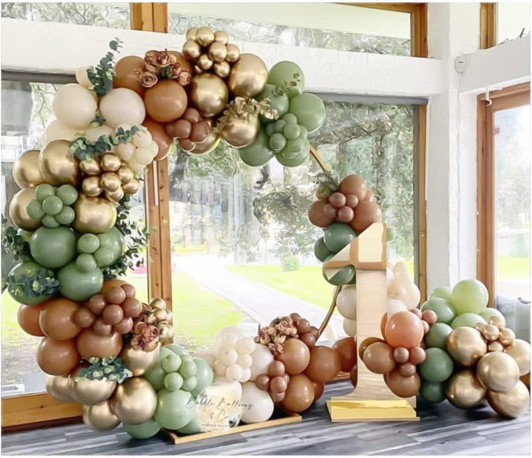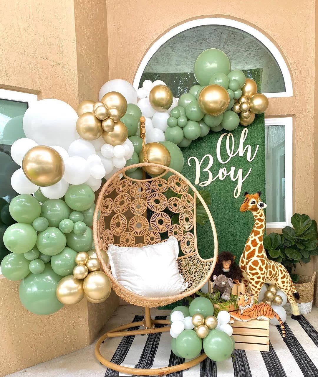 135 peças de arco de balões para festa na selva, verde, laranja, dourado, guirlanda de balões para festa temática de dinossauro na selva, festa de aniversário infantil para meninos e decoração de festa de animais, 300g