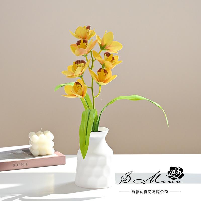 Nome do produto: Planta artificial de orquídea Cymbidium de 7 flores em vaso