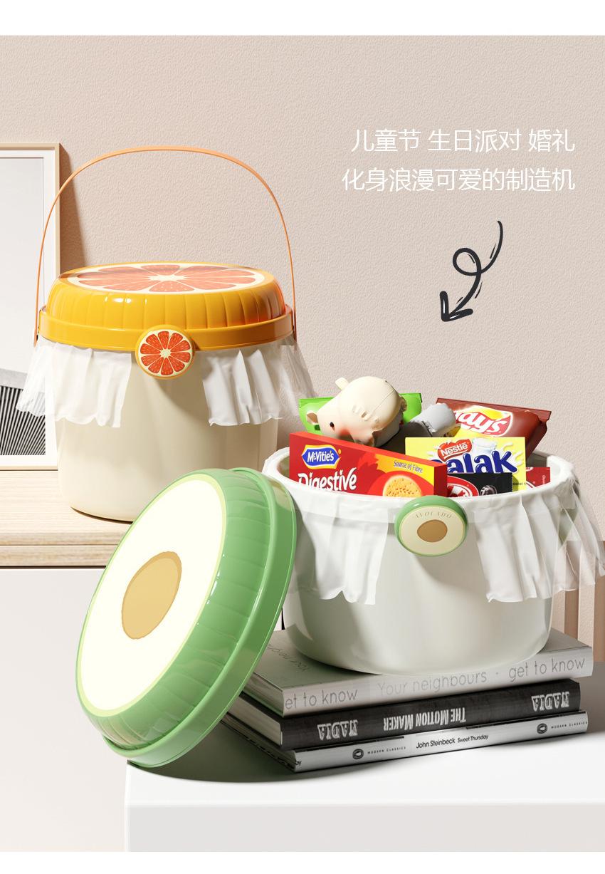 Fivela de frutas fofa para crianças, brinquedo para boneca, balde de armazenamento, lanche portátil, balde de presente para doces, lembrança de primeiro aniversário do bebê