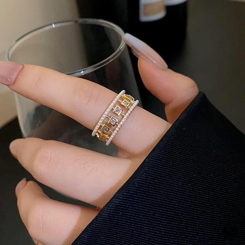 2024 estilo quente zircão geométrico anel aberto simples moda índice dedo anel temperamento luz luxo versátil mão jóias atacado mulheres