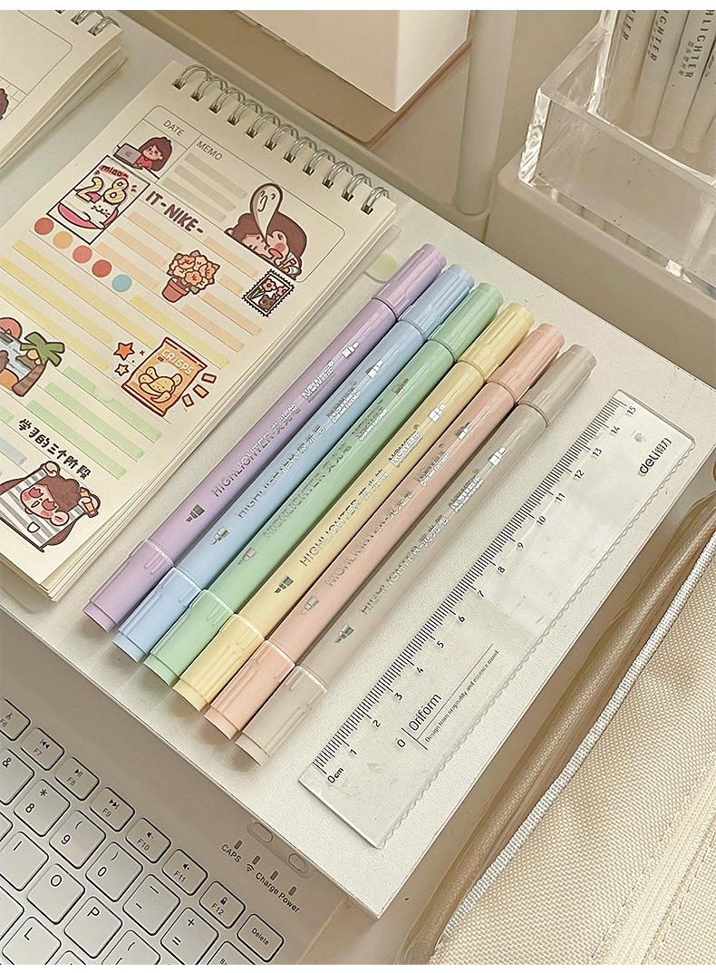Compre Marcador de texto de cabeça dupla Morandi, caneta de grande capacidade, caneta especial para caneta de mão no atacado no Joom.pro