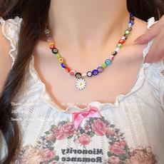 | |  | Colar de contas de vidro de dopamina para mulheres, doce nicho, versátil, quente, menina, clavícula, corrente, estilo, novos acessórios | | | |