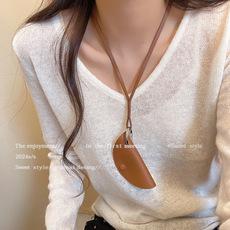 | |  | Bolsa de couro retrô coreana colar simples nicho temperamento longo pendurado pescoço clipe de olho suéter corrente acessórios quentes | | | |