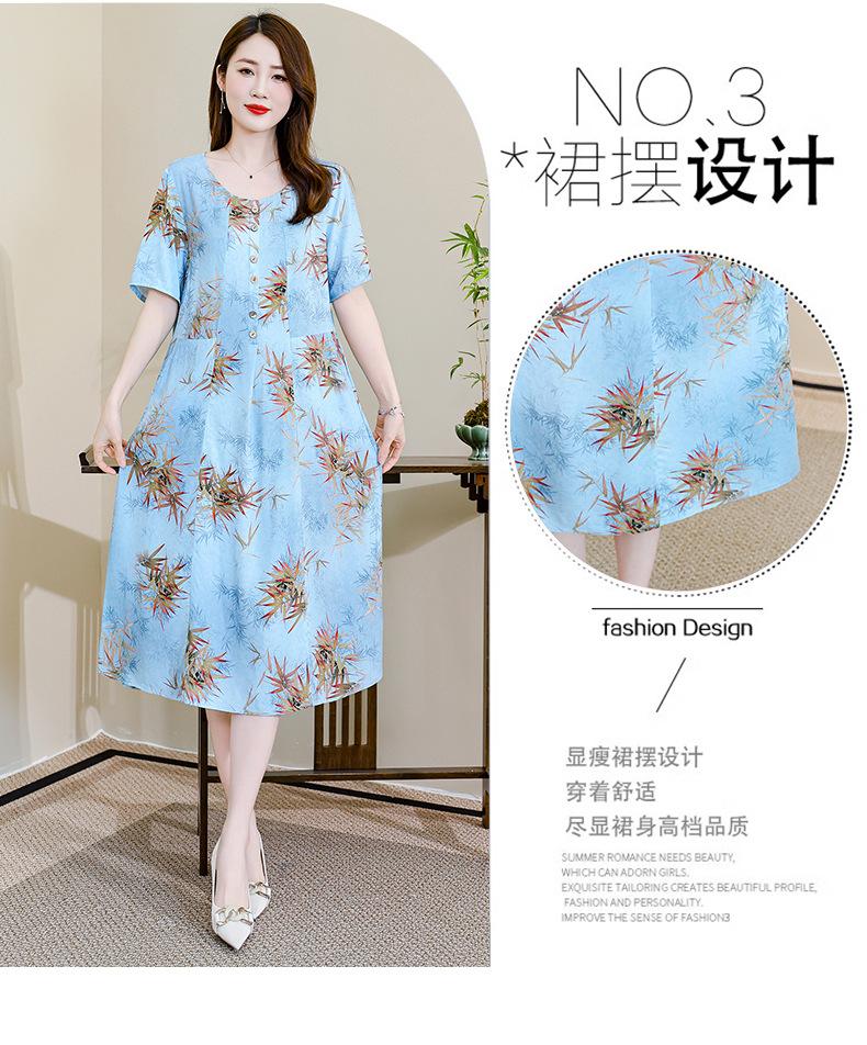 Compre Vestido de seda e algodão estilo ocidental para mães, verão 2025, novo, elegante, 40 anos, 50 anos, meia-idade, saia de manga curta no atacado no Joom.pro