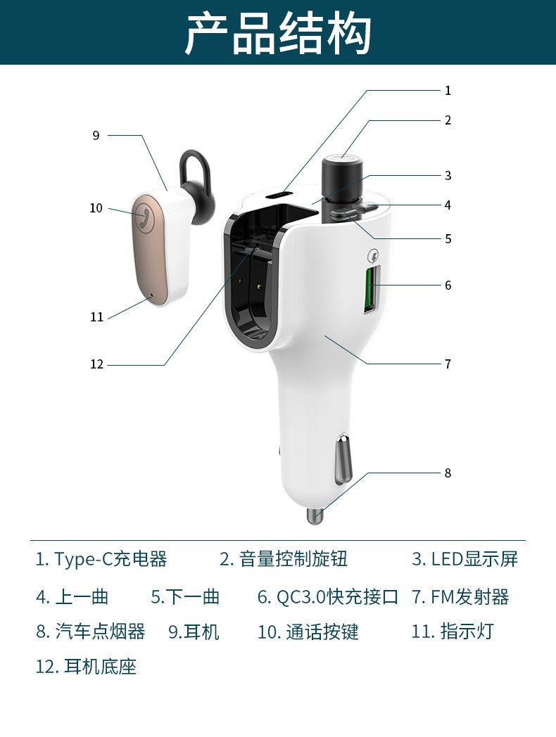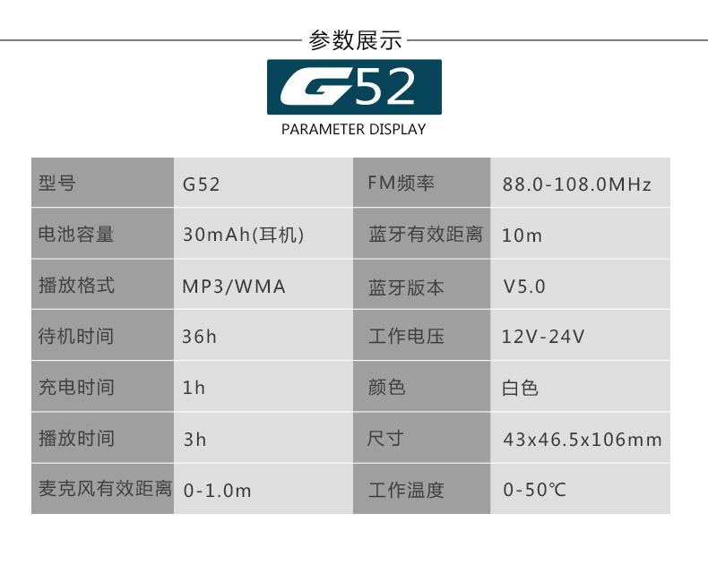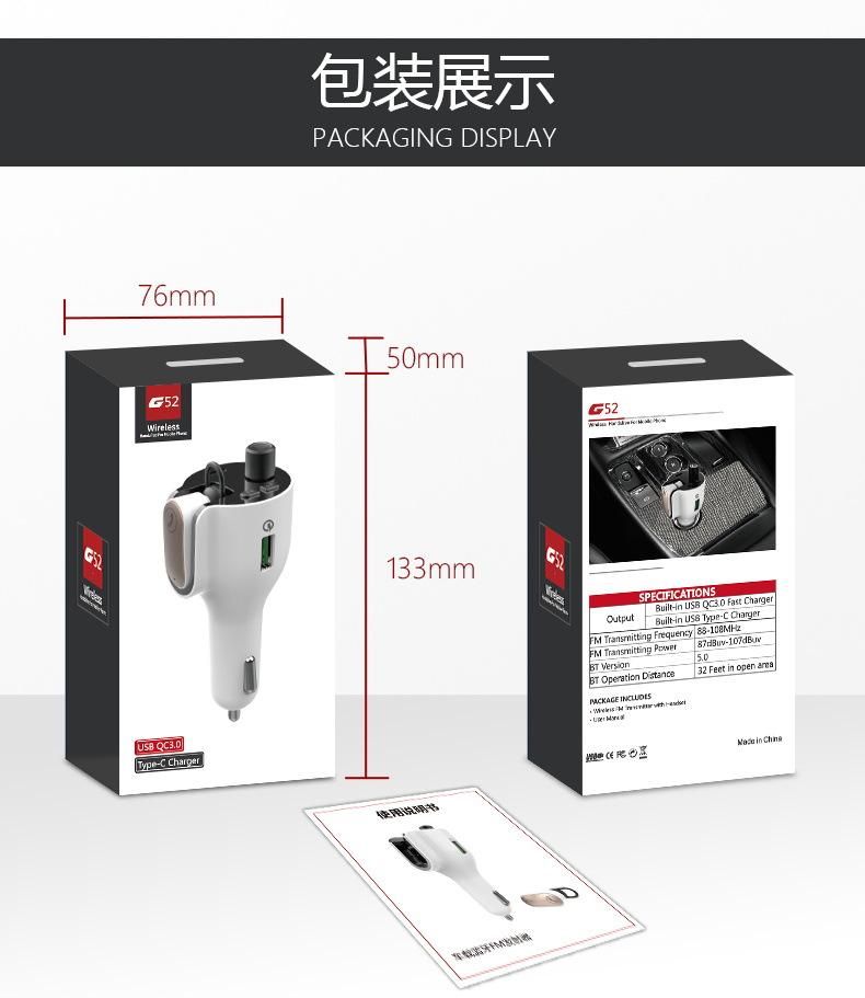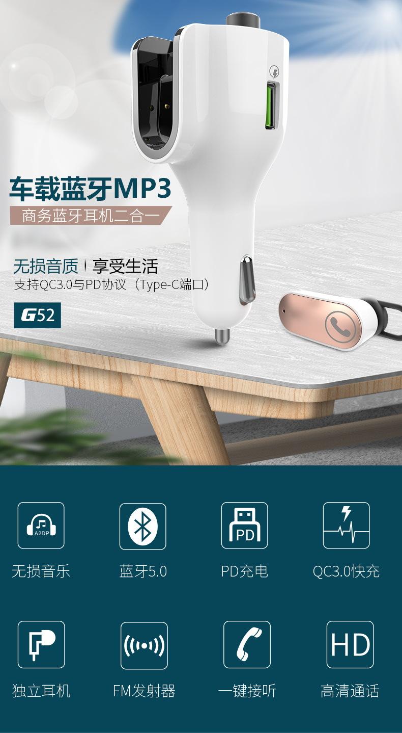 Novo G52 carro Bluetooth mp3 + fone de ouvido Bluetooth, suporta protocolo QC3.0 + PD