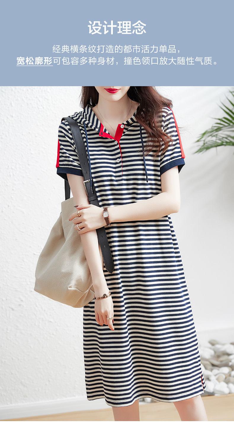 Vestido feminino de manga curta para o verão 2023 Vestido feminino elegante moda listrado com capuz solto de comprimento médio