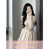 Compre Vestido estilo francês feminino outono e inverno pequeno high-end elegante forrado de lã casaco espesso base interna saia longa no atacado no Joom.pro