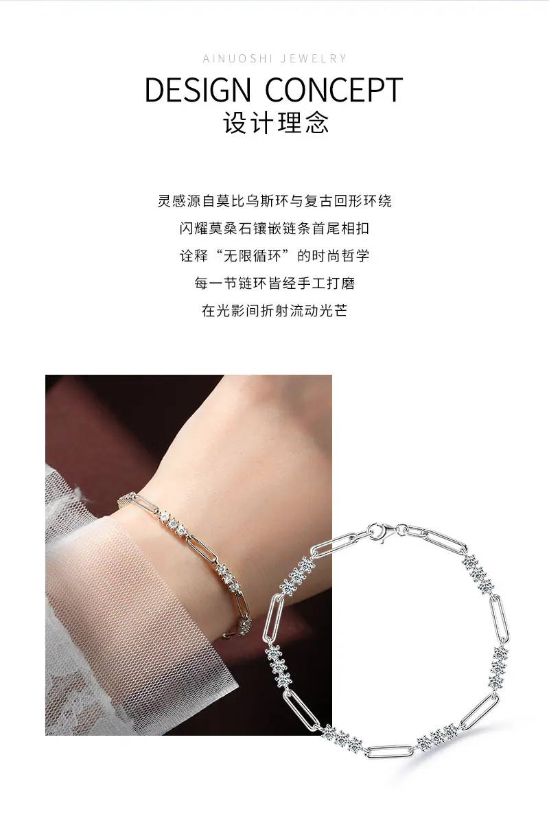 Nueva pulsera de moissanita color D con personalidad estilo ins, plata esterlina s925, moda nicho, joyería de mano, venta caliente transfronteriza