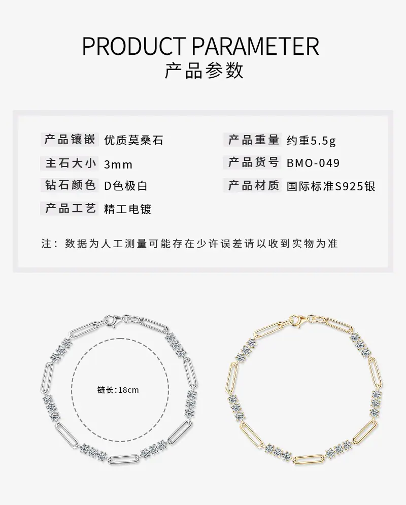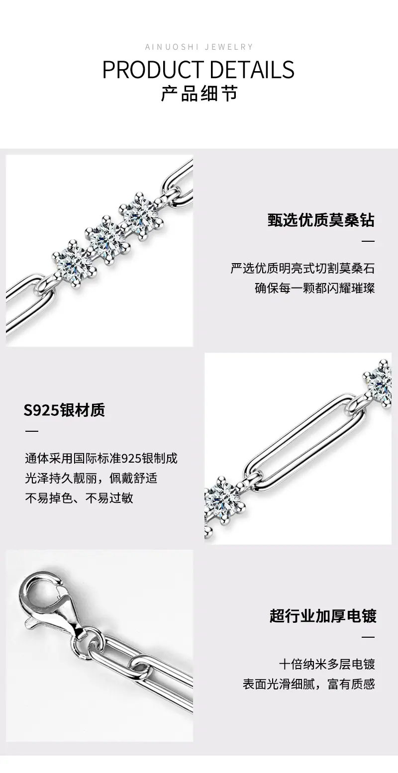 Pulsera de Cadena de Tenis de Diseño Nicho de Lujo Ligero Influencer de Comercio Exterior Plata s925 Moissanita Pulsera Versátil Venta al por Mayor Transfronteriza