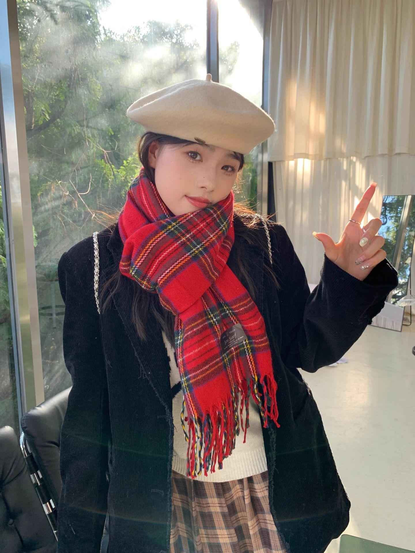 Compre Cachecol Xadrez Feminino Inverno Senso de Alta Qualidade Outono e Inverno Nova Moda Combinação Universal Xale de Caxemira Quente Cachecol Tricotado para Homens no atacado no Joom.pro