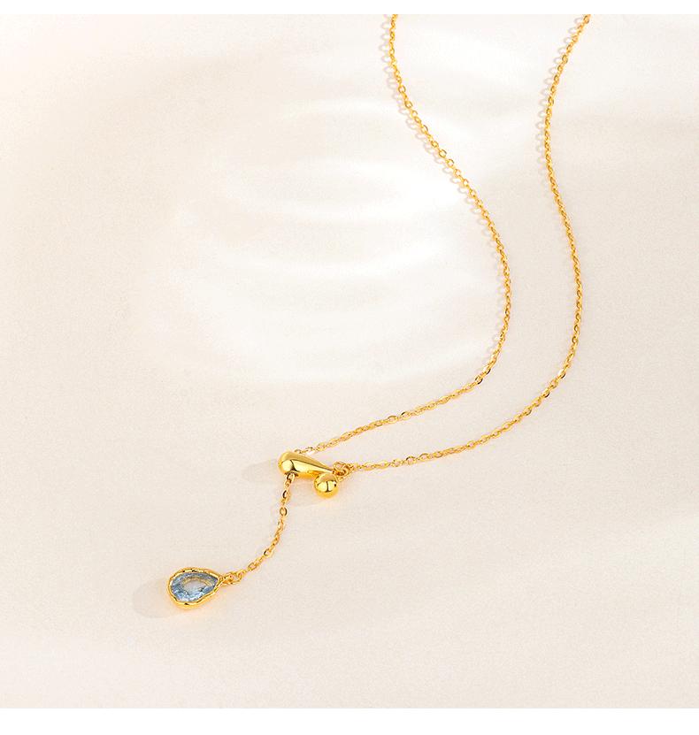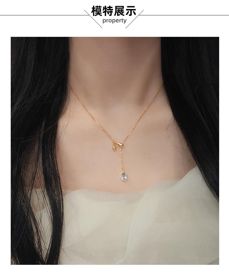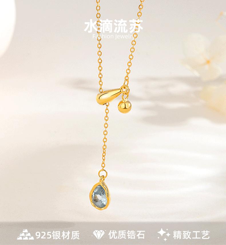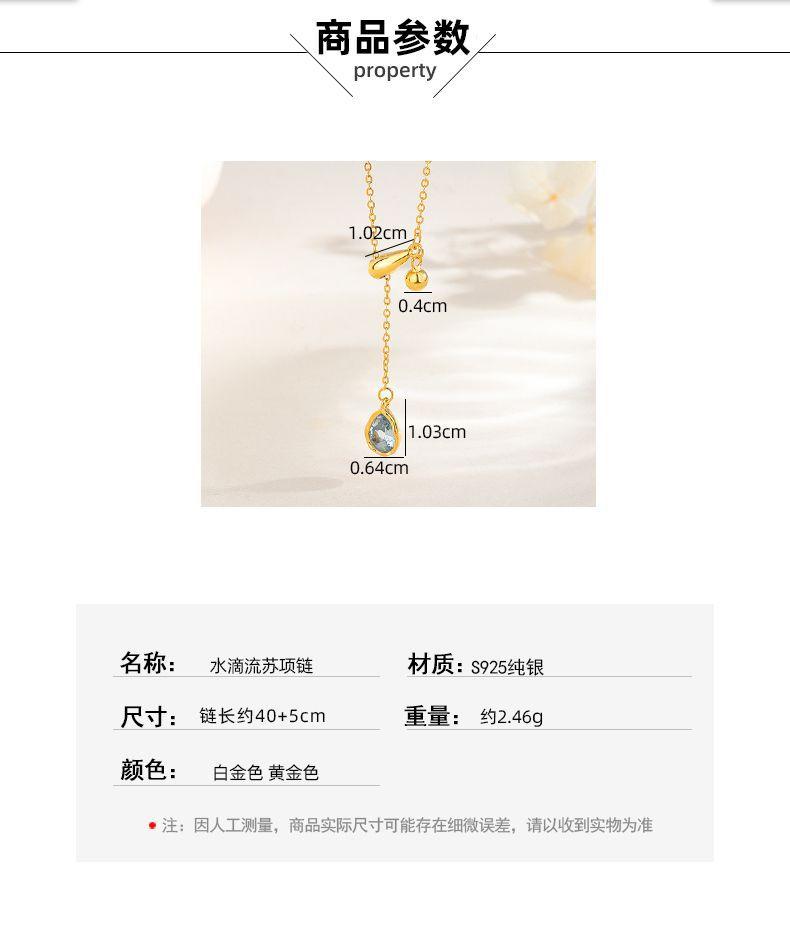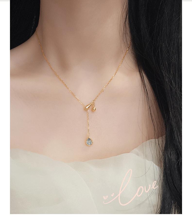 Compre S925 Prata Esterlina Azul Gota de Água Pingente Puxar Colar Ajustável Feminino 2024 Nova Explosão Corrente de Clavícula de Alta Qualidade no atacado no Joom.pro