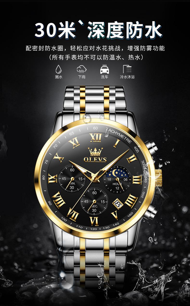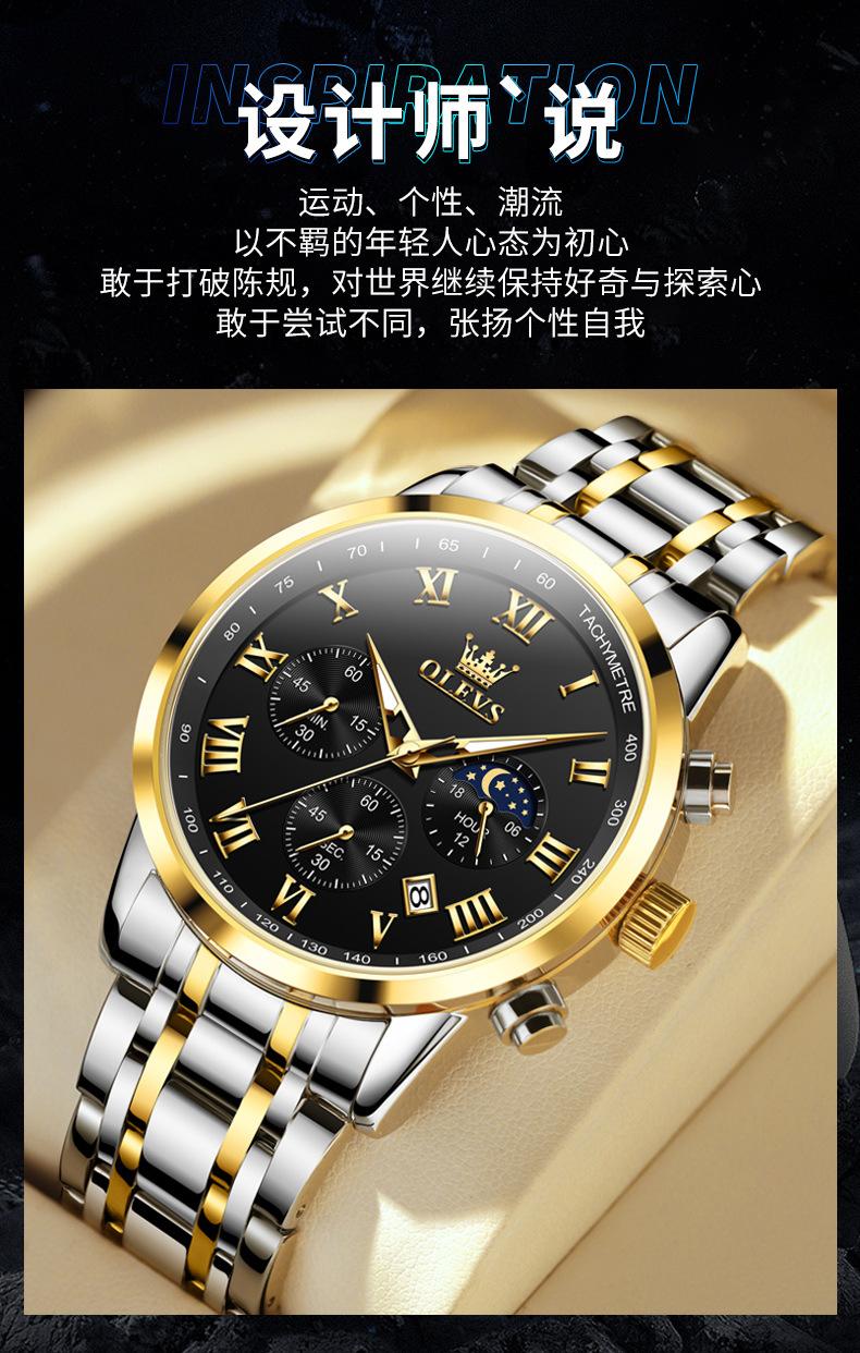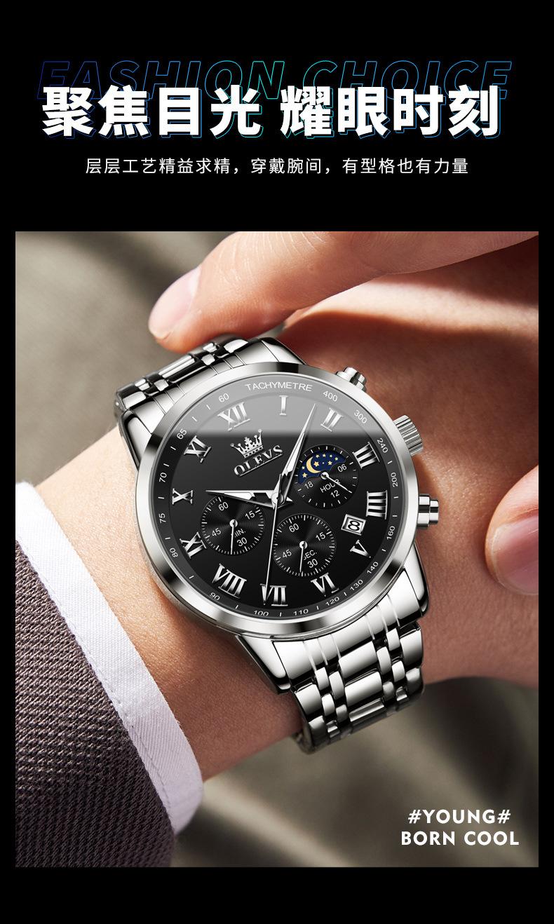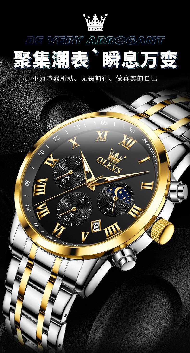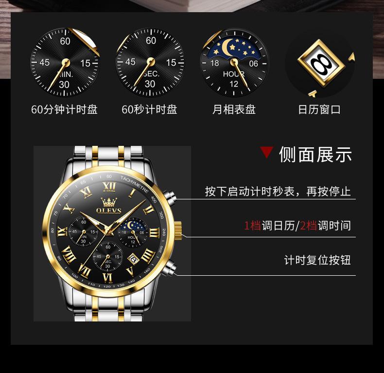【Espessura】: 11 mm, estilo cronógrafo multifuncional com fases da lua!!