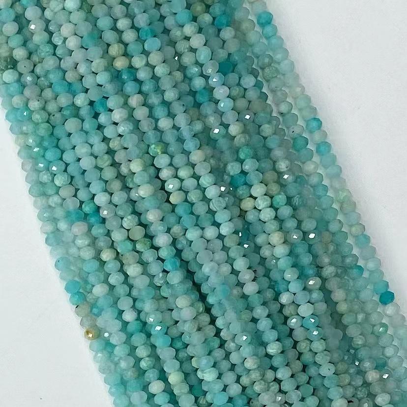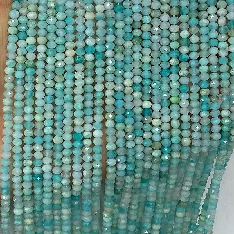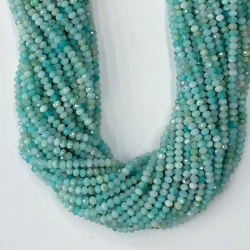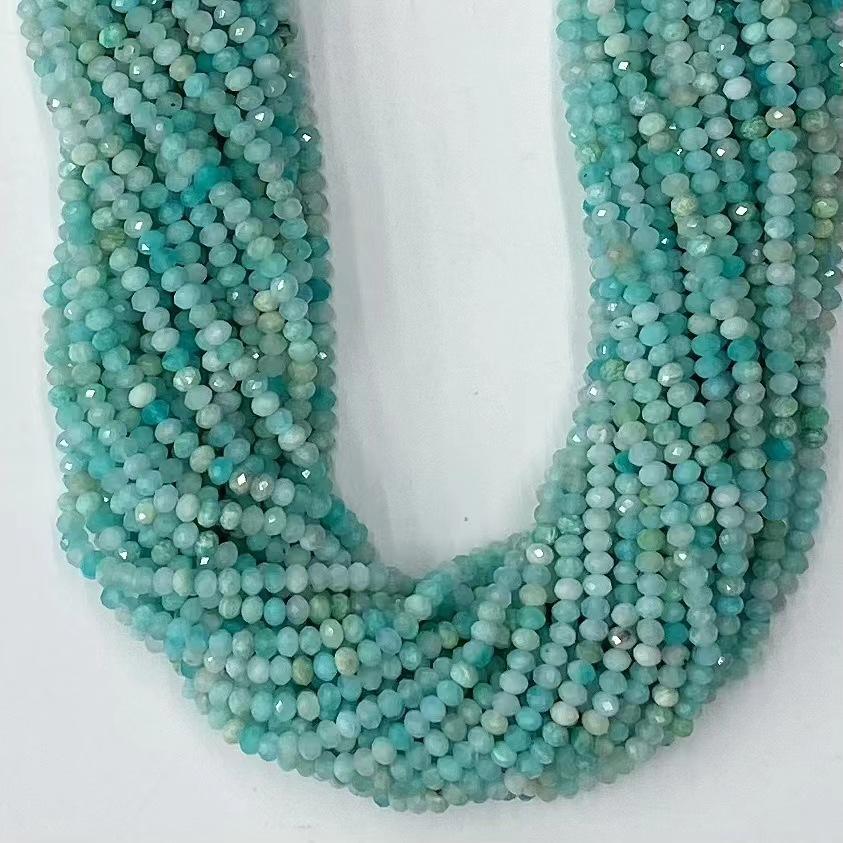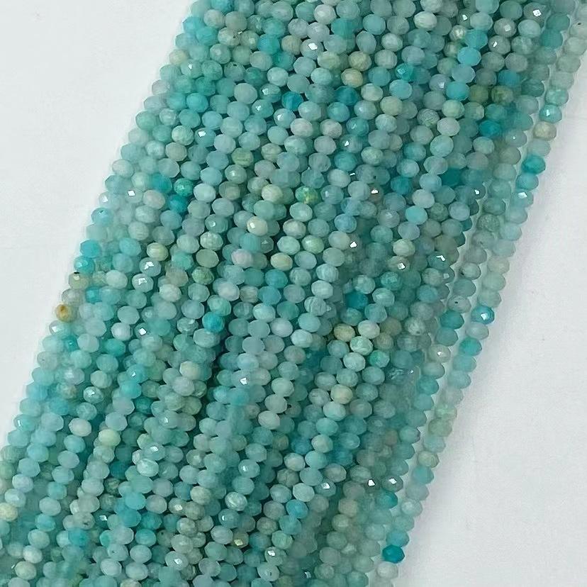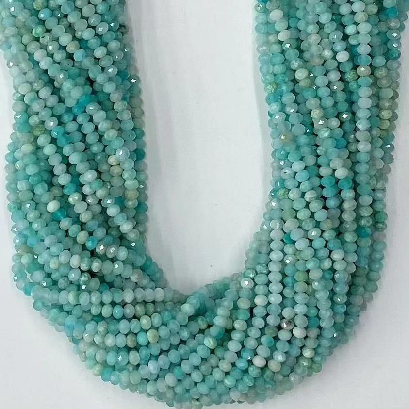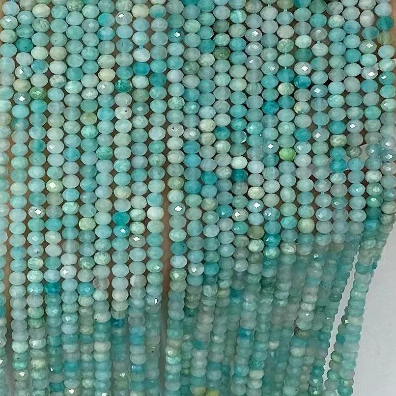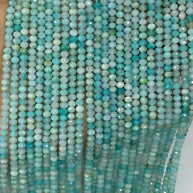 Nome do produto: Amazonita Material: Pedra natural Especificação: 2 mm x 3 mm 3 mm x 4 mm 3 mm x 5 mm 5 mm x 8 mm Comprimento: 38 cm-39 cm