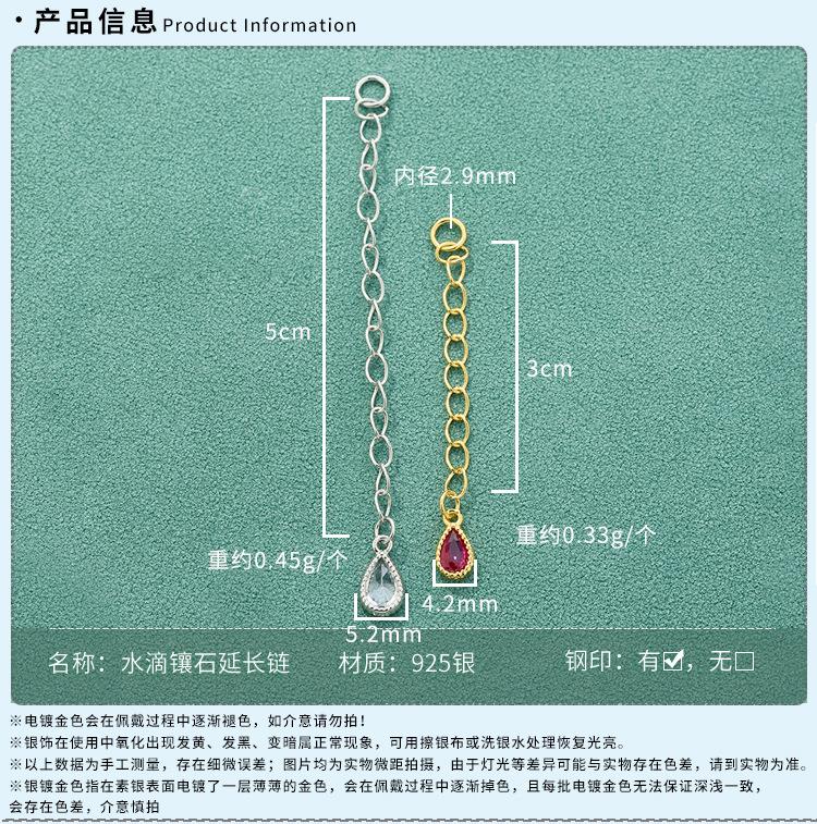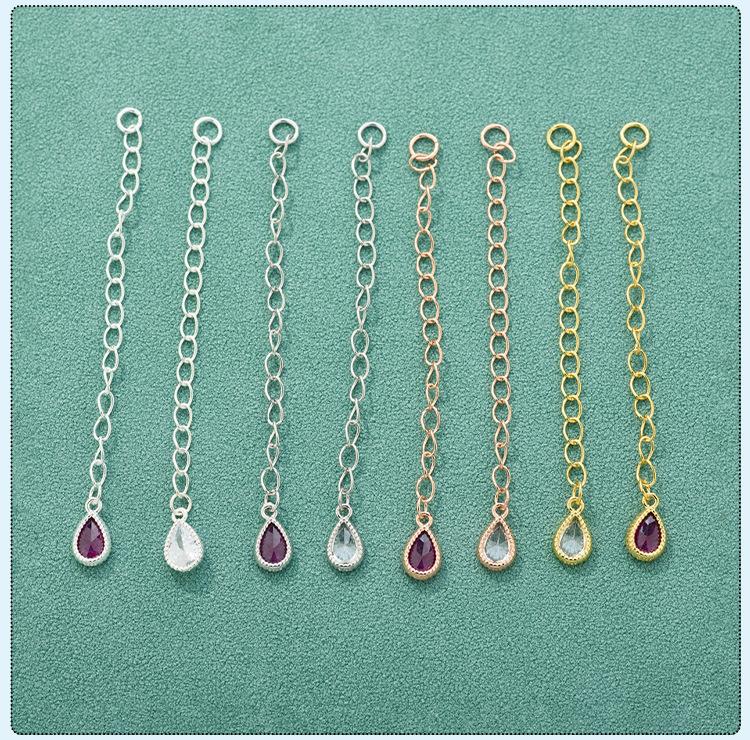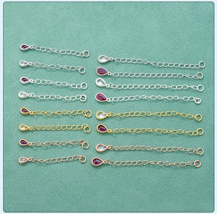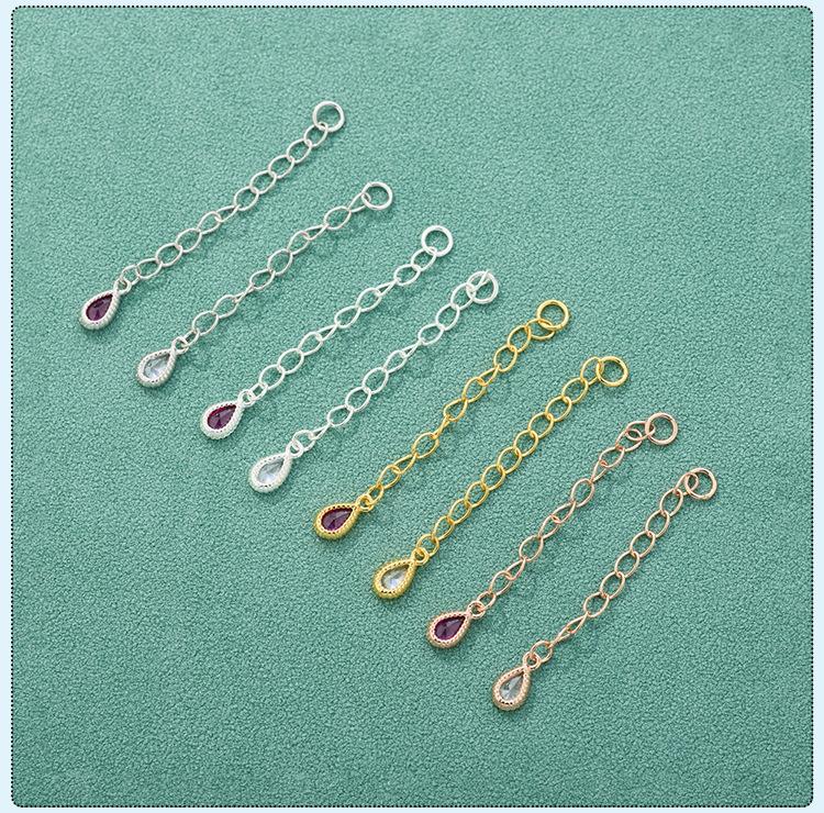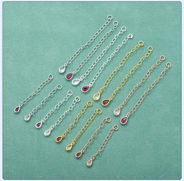 Compre S925 Prata Esterlina Zircão Gota Cadeia Cauda Cadeia Estendida Feito à Mão DIY Pulseira Colar Cauda Material Acessórios no atacado no Joom.pro