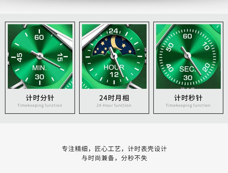 O relógio é feito com requinte, o que é incomparável com produtos de 10 ou 20 yuans. Prestamos atenção à qualidade dos detalhes, usamos apenas movimentos de alta qualidade e usamos artesanato de alta qualidade para polimento e galvanoplastia. A reputação das vendas transfronteiriças e das vendas internas é muito boa. A qualidade não tem medo de comparação! Nossa filosofia é que, em vez de fabricar produtos de qualidade inferior para economizar alguns yuans e trazer muitos problemas de pós-venda para as vendas, é melhor gastar dinheiro com qualidade e economizar no trabalho de pós-venda. Em comparação, permitirá que os revendedores obtenham mais margens de lucro e que os consumidores obtenham produtos melhores!