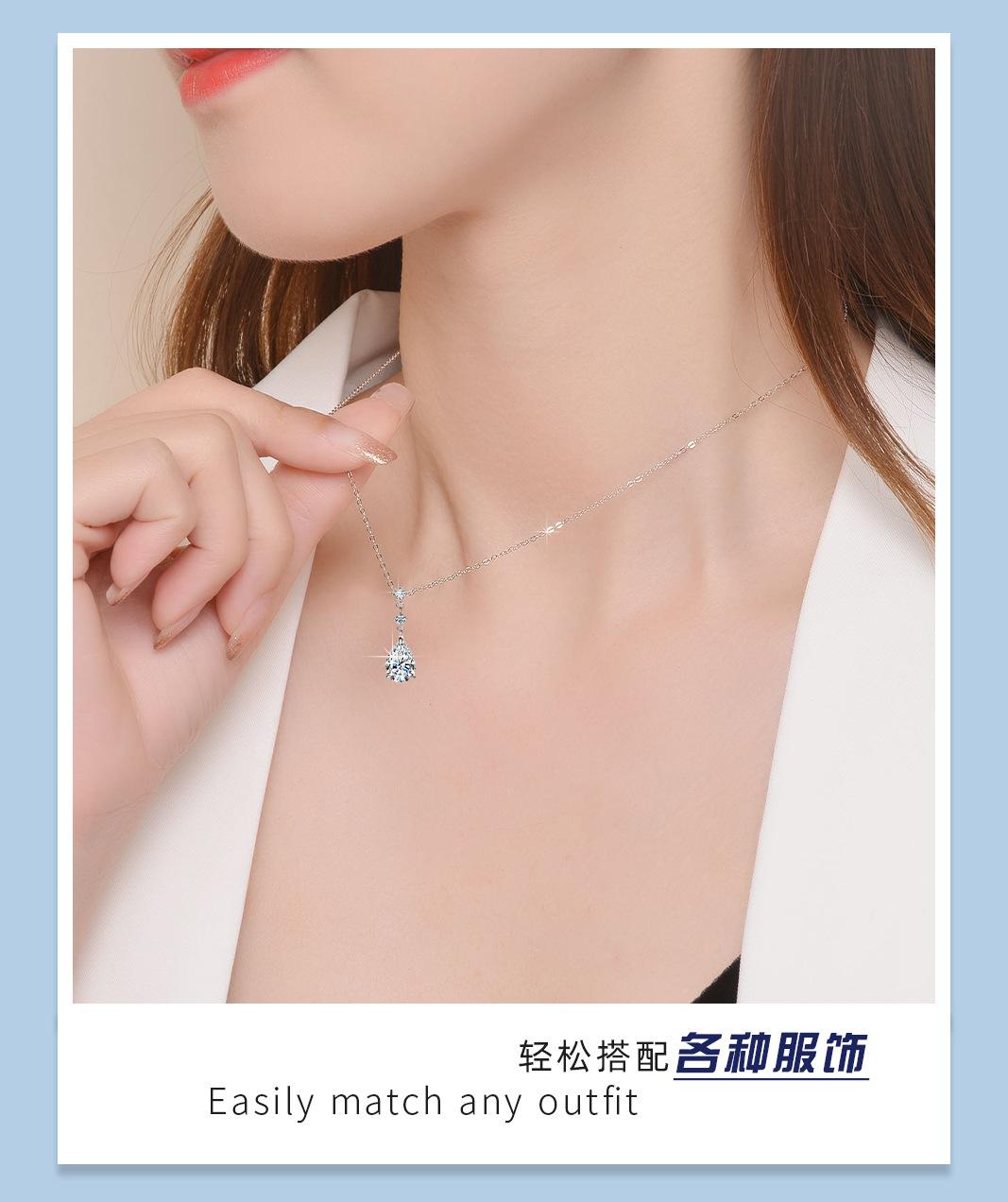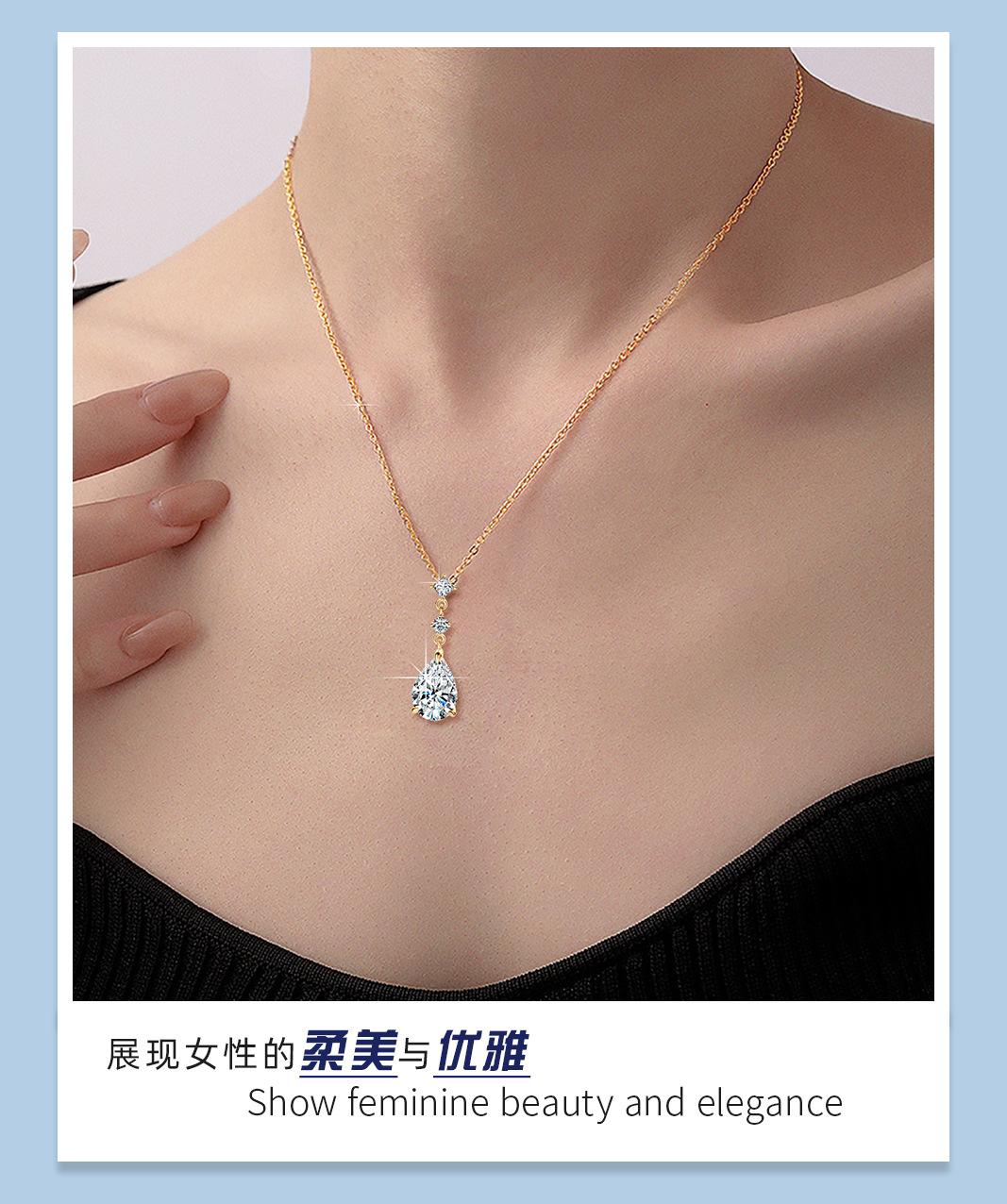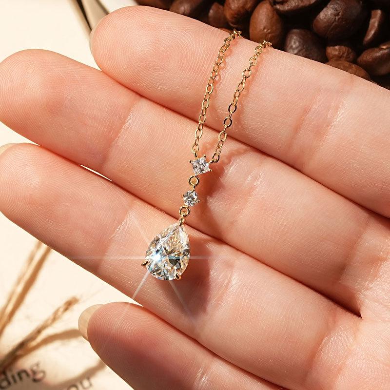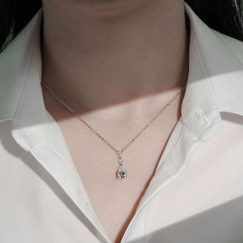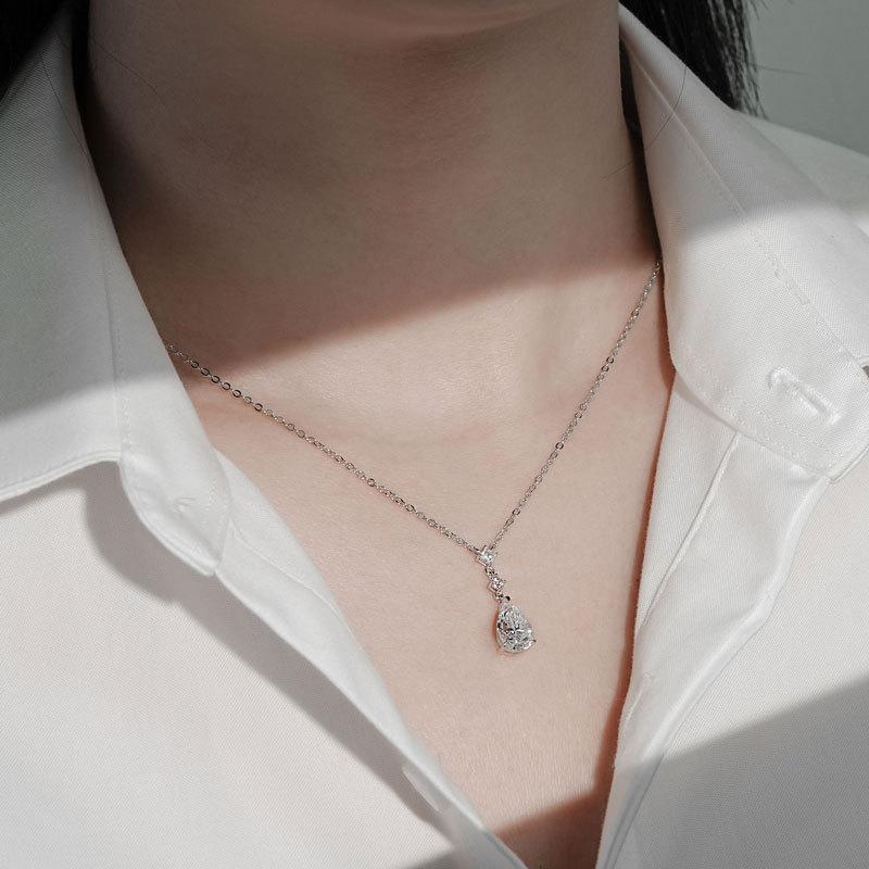 Colar Lágrimas de Sereia Estilo Zhao Lusi Nicho High-End Moissanita Cor D Corrente para Clavícula Prata de Lei s925 Atacado