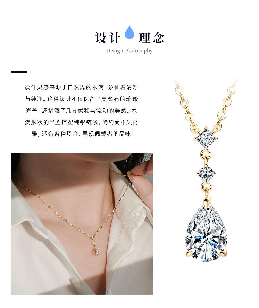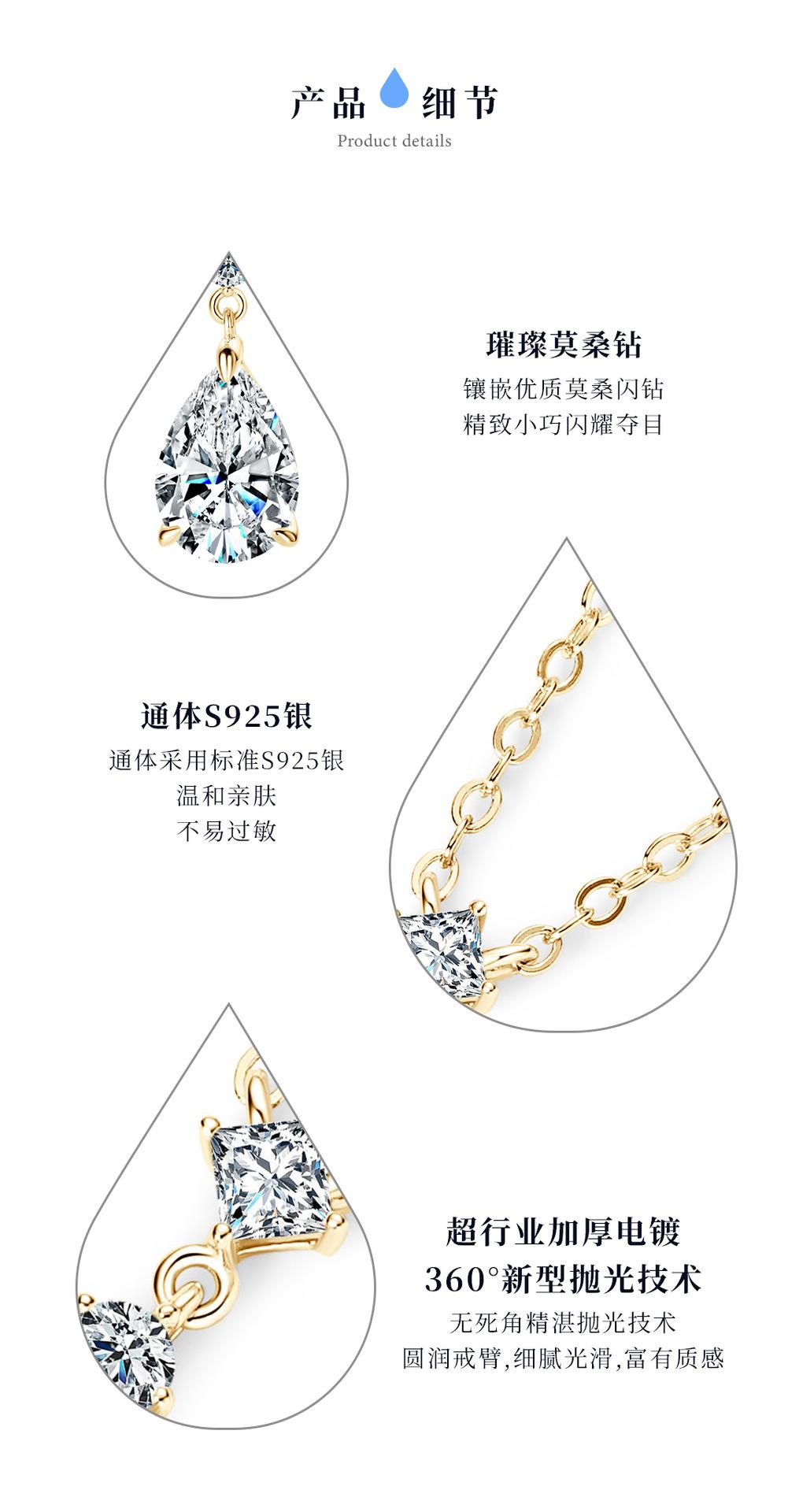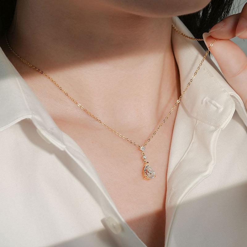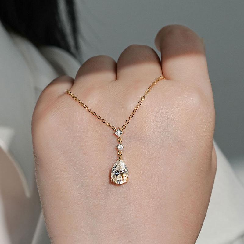 Colar Lágrimas de Sereia Estilo Zhao Lusi Nicho High-End Moissanita Cor D Corrente para Clavícula Prata de Lei s925 Atacado