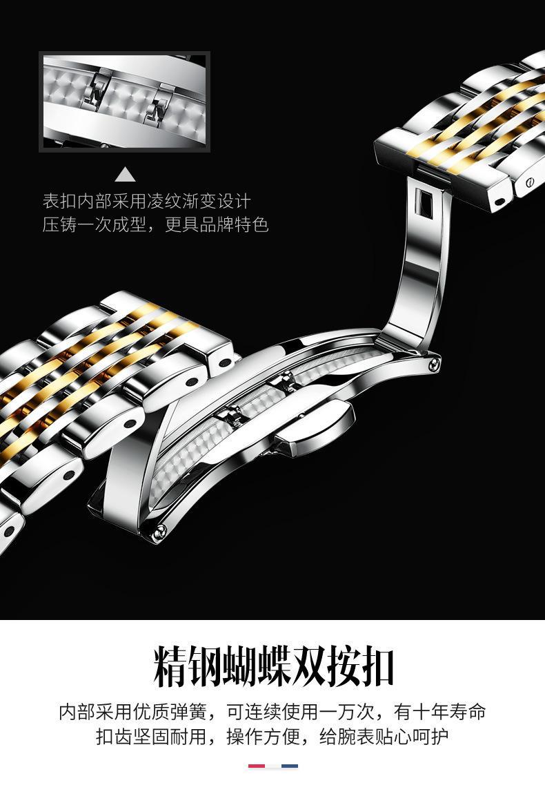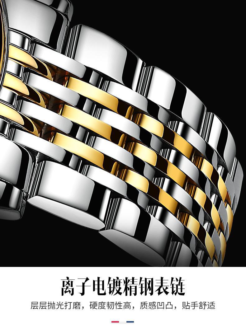 El reloj está exquisitamente fabricado, lo cual es incomparable con los productos de uno o doscientos yuanes. Prestamos atención a la calidad de los detalles, solo usamos movimientos de alta calidad, y el pulido y el electrochapado de la caja del reloj están hechos con tecnología de alta calidad. ¡La calidad no teme a la comparación! Nuestra filosofía es que en lugar de fabricar productos inferiores para ahorrar unos pocos yuanes y traer muchos problemas de posventa a las ventas, es mejor gastar dinero en calidad y ahorrar los problemas de posventa. En contraste, esto permitirá a los distribuidores obtener mayores márgenes de beneficio y a los consumidores obtener mejores productos!