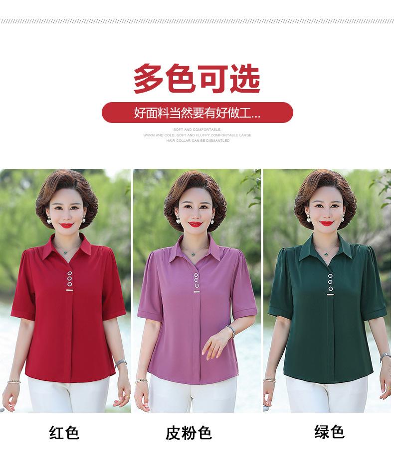Compre Camisa da mãe, camiseta estilosa de manga curta, moda feminina de meia-idade e idosa, top 2024, verão, nova cor sólida, camisa pequena no atacado no Joom.pro