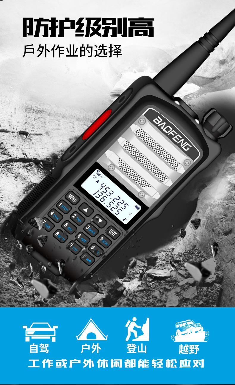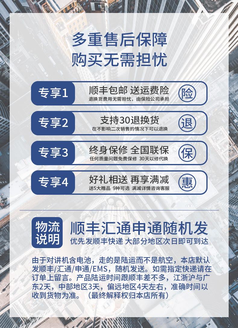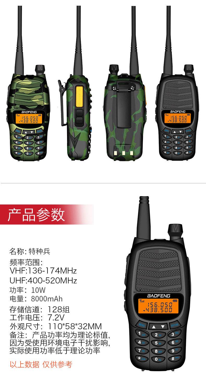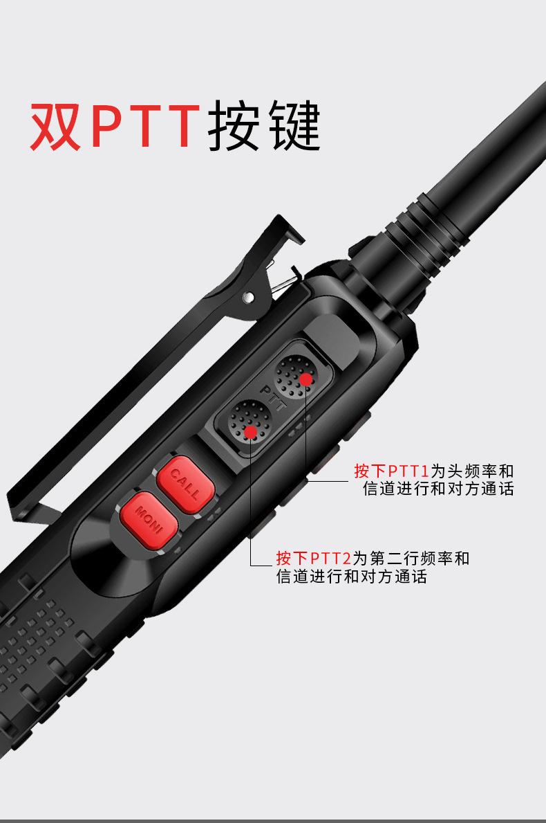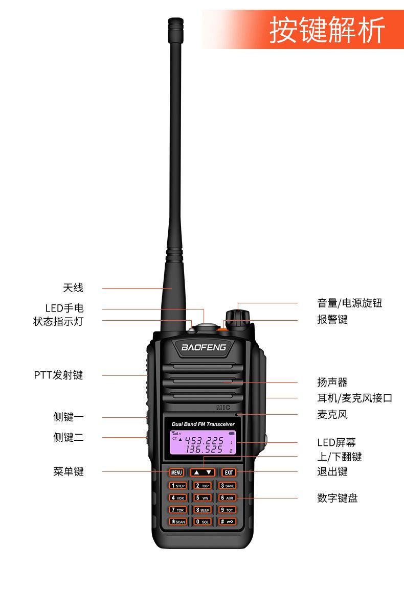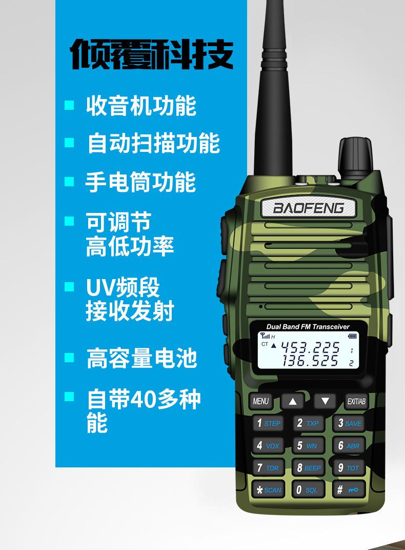 Com função de busca automática e exibição de sinalização CTCSS/DCS Com rádio novo, com função de iluminação por lanterna Com função de trabalho UU, VV, UV Com função de edição de nome de canal Com função de intercomunicação de banda dupla, com função de programação por computador Com função de controle de voz, frequência, varredura de canal Função de edição de tabela de varredura de canal (os canais podem ser livremente selecionados para participar da varredura) UV-5RE Faixa de frequência: FM: 65-108MHz (rádio, pode receber, não transmitir) VHF: 136.000-174.00MHz (VHF, transmite e recebe) UHF: 400-520.00MHz (UHF, transmite e recebe) Número de canais: 128 Tensão de trabalho: 7.2V DC Bateria de lítio 1800MAH Passo de frequência: 2.5/6.25/10/12.5/20/25KHz Estabilidade de frequência: ± 2.5PPM Impedância da antena 50Ω Tamanho: 99.7mm×54.4mm×31.7mm (altura×largura×espessura) (a altura nos dados acima não inclui a antena, a espessura inclui a bateria, o comprimento da antena é de cerca de 120mm e a espessura da bateria é de cerca de 15mm) Potência de saída do transmissor: alta ≥8W, baixa ≥3W Corrente: ≤1.4A (4W) Sensibilidade de modulação: 8-12mV Distorção de modulação: <10% Limite de modulação Banda larga <5KHz, banda estreita <2.5KHz Sub-áudio/sub-áudio digital Desvio de frequência: 0.75KHz±50Hz, 0.37KHz±30Hz Radiação espúria: <7μW Modo de modulação: 16KΦF3E/11KΦF3E Características de modulação: 6dB/por aumento de frequência Parte receptora sensibilidade de referência: -122dBm (12dB SINAD) Potência de áudio: 1W Distorção de áudio: <10% Largura de banda de recepção de modulação: 5K Supressão de ruído: ≥65dB Seletividade de canal adjacente (banda larga, banda estreita): ≥65dB, ≥60dB Intermodulação (banda larga, banda estreita): ≥60dB, ≥55dB Bloqueio: ≥85dB Configuração padrão: 1 unidade principal, 1 antena, 1 bateria, 1 carregador, 1 clipe de cinto, 1 cordão de mão, 1 manual de instruções, 1 caixa de embalagem.