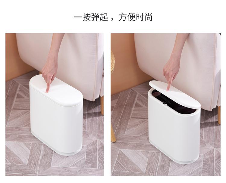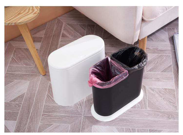 Bote de basura ovalado de plástico con tapa, bote de basura con tapa abatible tipo push, baño, cocina, contenedor sanitario, almacenamiento