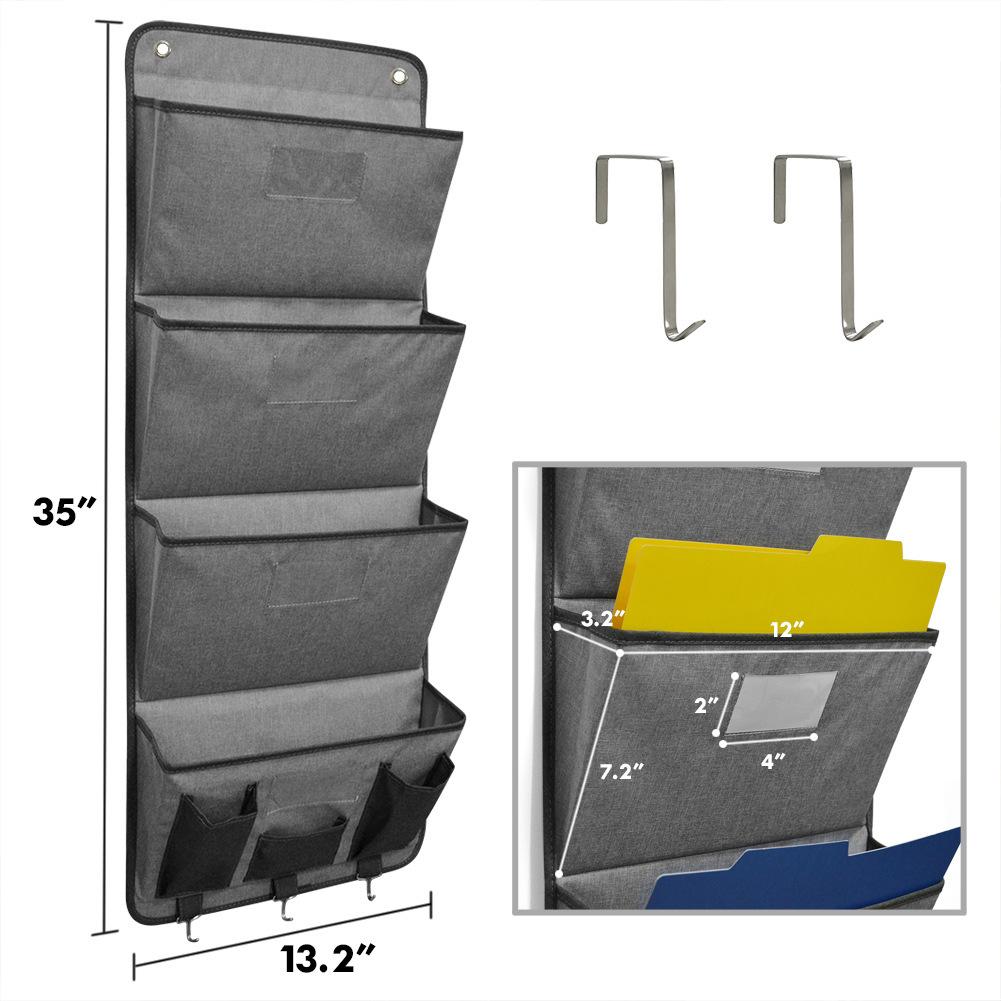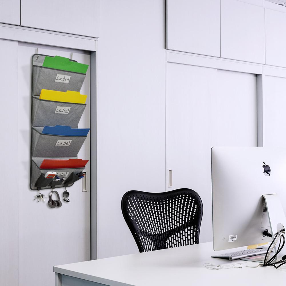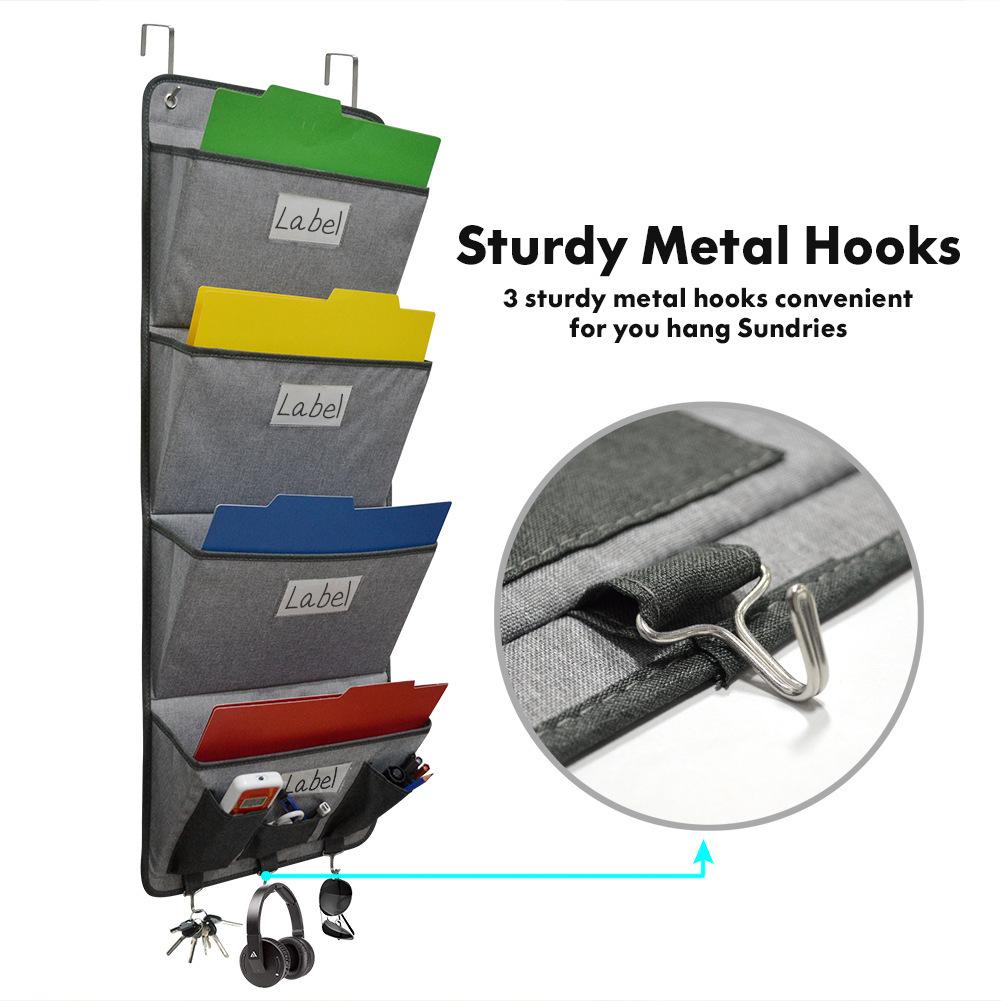Esta bolsa para pendurar arquivos é feita de4Bolsos,Há um bolso para cartão de classificação na abertura de cada bolsa,O bolso inferior também tem3Bolso pequeno,Pode conter pequenos artigos de papelaria, como celulares, tesouras e canetas,Há três pequenos ganchos abaixo.,Você pode pendurar a chave.Fones de ouvido e outros itens.Equipado com dois ganchos,Você pode pendurá-lo em qualquer lugar que você queira armazená-lo. Economize mais espaço na sua mesa;Armazene materiais de escritório e suprimentos de escritório.
