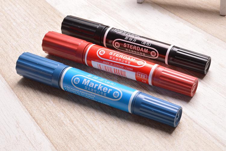 : Caneta marcadora preta de ponta dupla à base de óleo