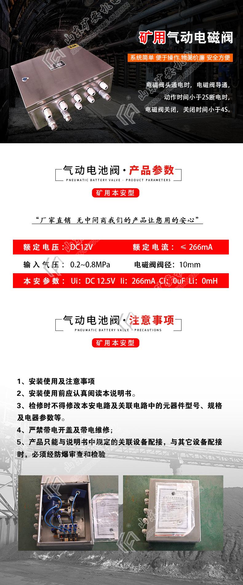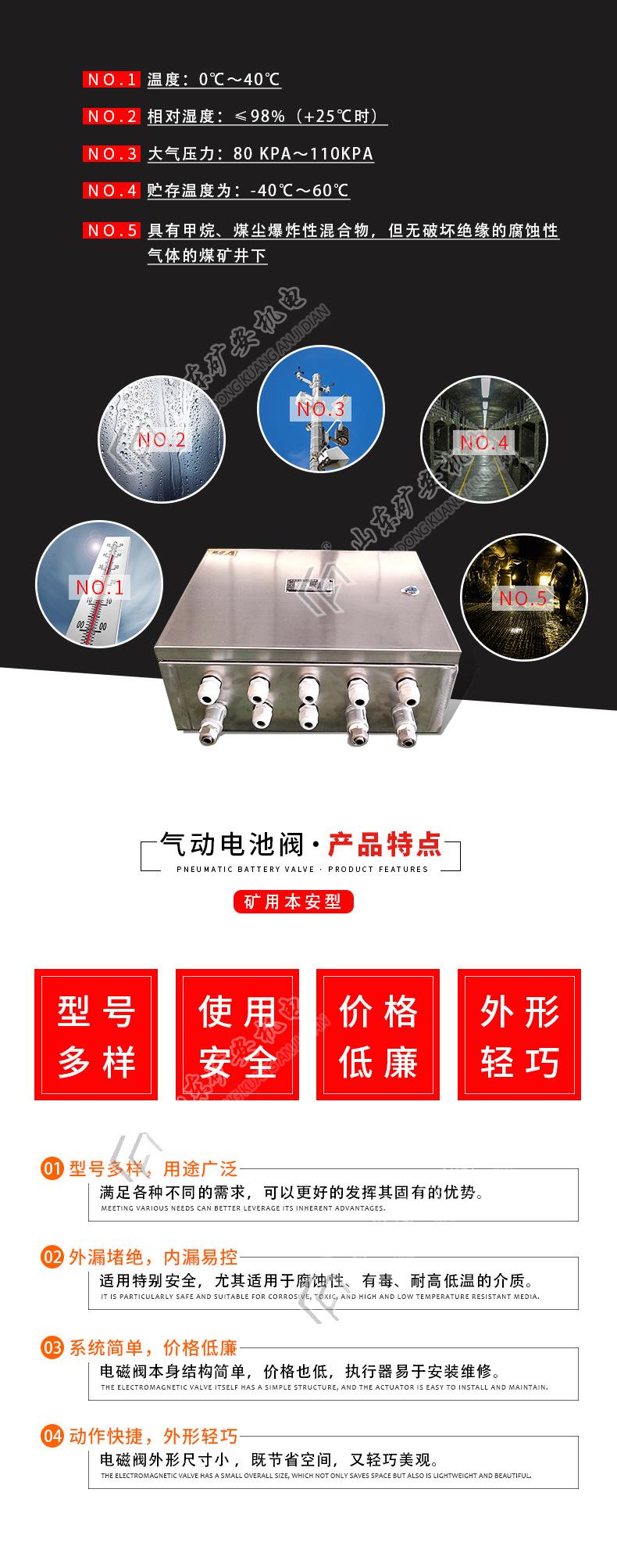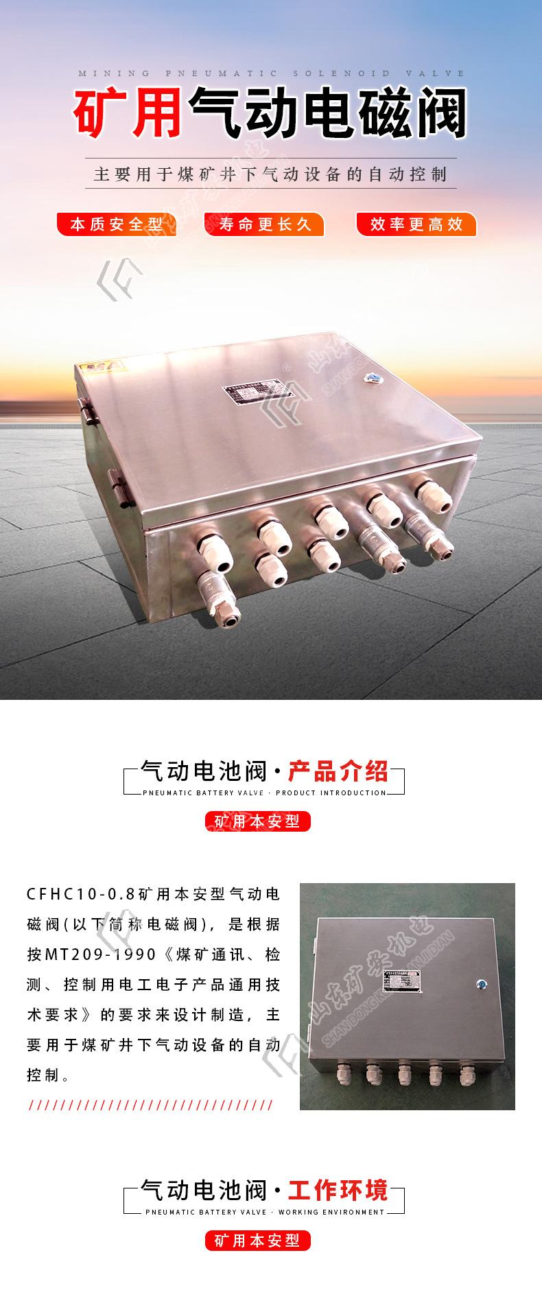 A válvula solenoide pneumática intrinsecamente segura para mineração CFHC10-0.8 (doravante denominada válvula solenoide) foi projetada e fabricada de acordo com os requisitos do MT209-1990 "Requisitos técnicos gerais para produtos elétricos e eletrônicos para comunicação, detecção e controle em minas de carvão" e é usada principalmente para controle automático de equipamentos pneumáticos em minas subterrâneas de carvão.