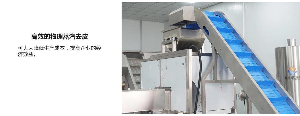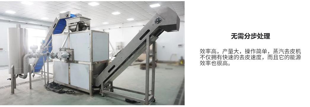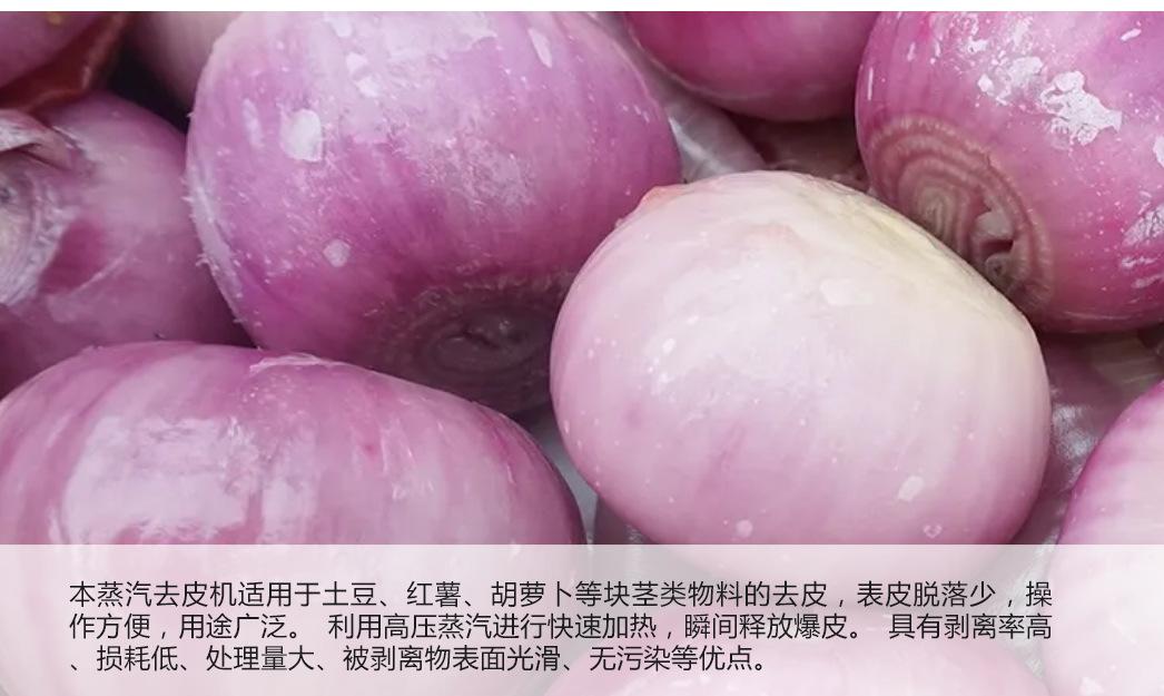El pelado con vapor ha sido durante mucho tiempo una forma de alta tecnología para pelar frutas y tubérculos de manera más eficiente y ahorrando energía. El pelador de vapor no solo tiene una velocidad de pelado rápida, sino que también es muy eficiente energéticamente. A través de mejoras tecnológicas, el espacio excedente en el tanque de pelado se reduce eficazmente, se mejora la eficiencia de la transferencia de calor del vapor a la superficie de la papa y la reducción también se reduce en consecuencia. La cantidad total de vapor en el tanque del recipiente a presión se reduce, logrando así el ahorro de energía. Es adecuado para tomates, kiwis, cebollas, duraznos, mangos, aguacates, uvas, duraznos amarillos, taro y otros materiales, y también se puede utilizar como equipo de pretratamiento para jugo y pulpa.