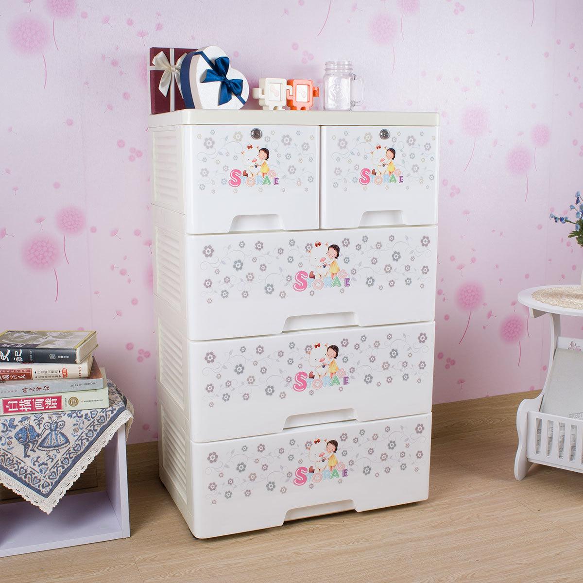 Armário de armazenamento de 4/5 camadas com estampa de desenho animado de 58 cm de largura com trava para organizar brinquedos e artigos diversos armário de armazenamento guarda-roupa de bebê