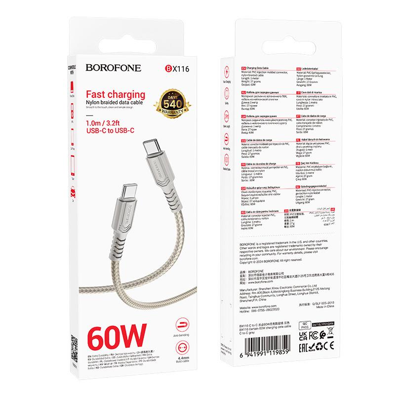 Cabo de dados de carregamento BX116 C para C 60W
