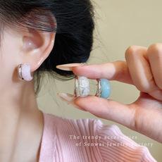 | |  | Brincos em forma de C de resina de atmosfera de outono e inverno para mulheres em estilo nicho temperamento brincos coloridos doces e versáteis novos brincos | | | |