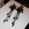 Compre Agulha de prata estilo escuro flor cristal borla brincos femininos europeus e americanos brincos exagerados moda elegante brincos sentido avançado no atacado no Joom.pro