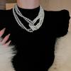 Colar com pingente de pérola artificial geométrica, retrô francês, requintado, corrente de clavícula, joia leve de luxo, atacado