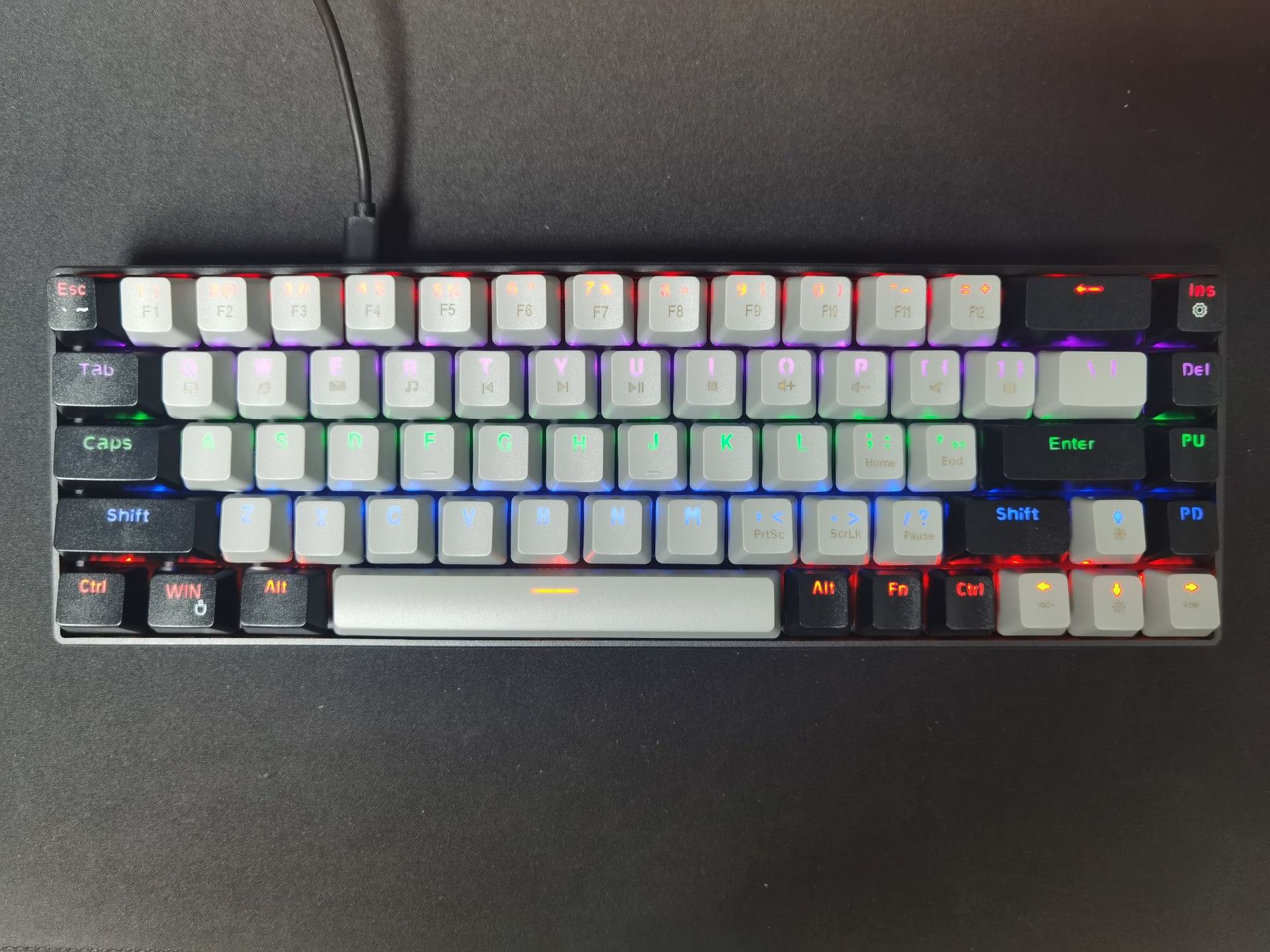 Suporta mais de 20 tipos de efeitos de iluminação LED super deslumbrantes, pressione FN+INS para alterar diferentes modos de iluminação.