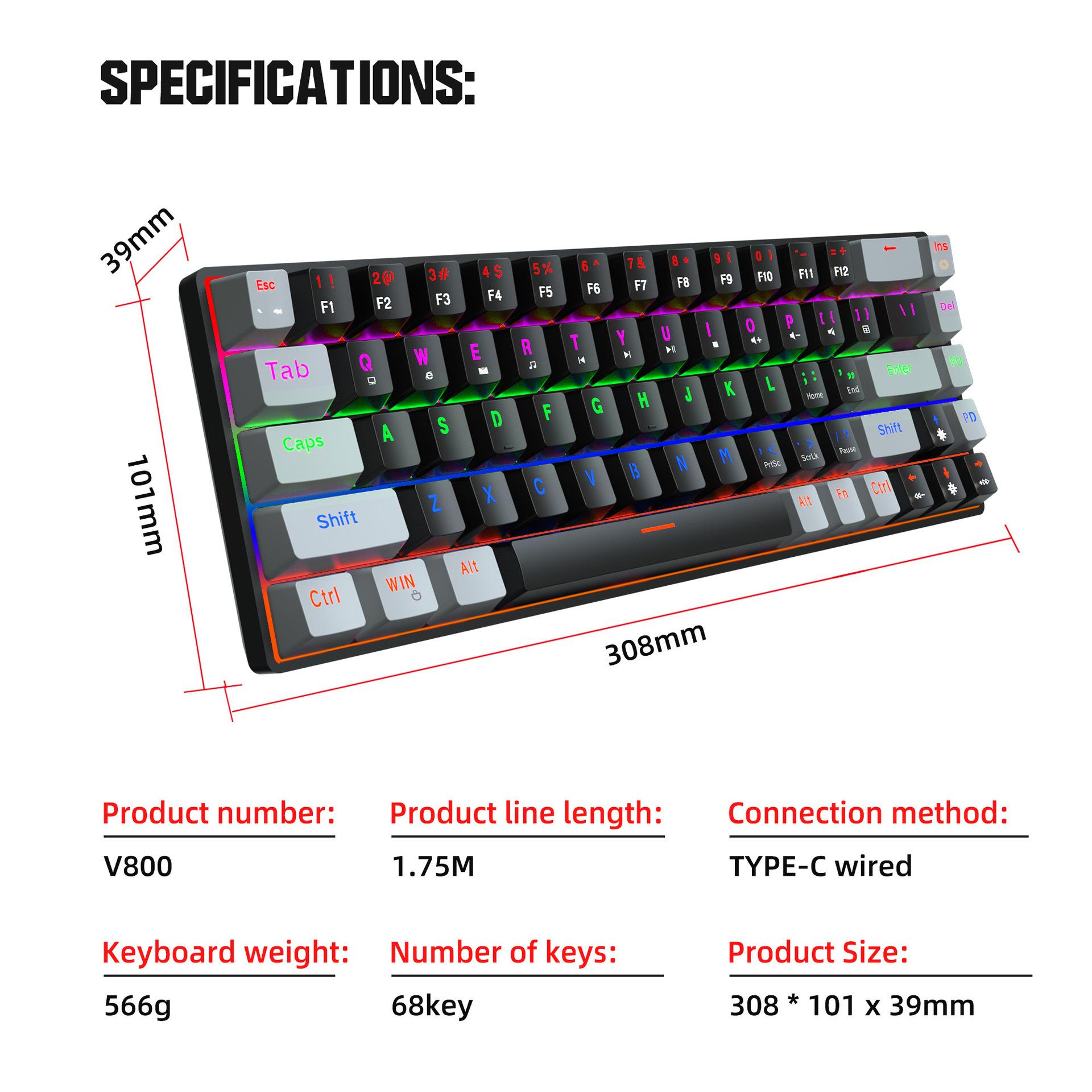 Item de especificação: teclado mecânico de 68 teclas