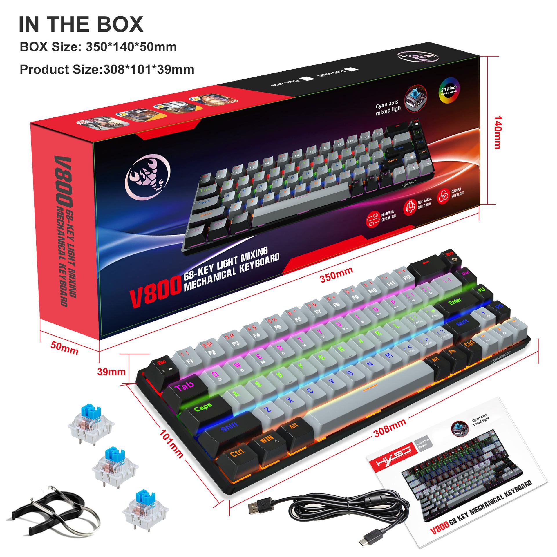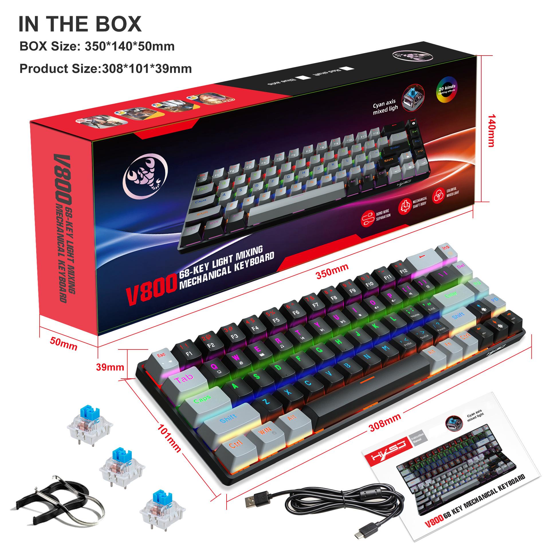 O eixo azul de 68 teclas recém-adicionado é um eixo plugável, e a imagem da embalagem é a seguinte: