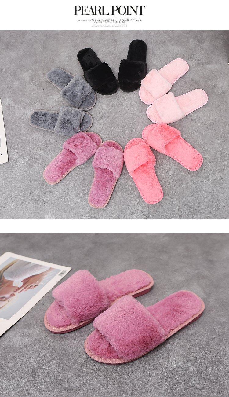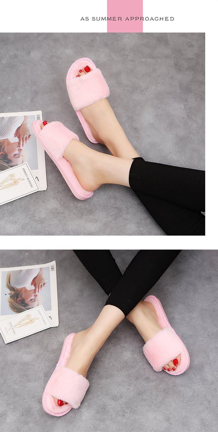 Compre Chinelos de pelúcia de bico aberto femininos cor de doce menina rosa moda lazer método simples quente chinelos de algodão no atacado no Joom.pro