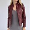 Roupas de couro femininas de tamanho europeu transfronteiriço Jaqueta feminina slim-fit Casaco fino de primavera e outono Roupas de motociclista femininas Jaqueta de couro com gola alta tamanho grande