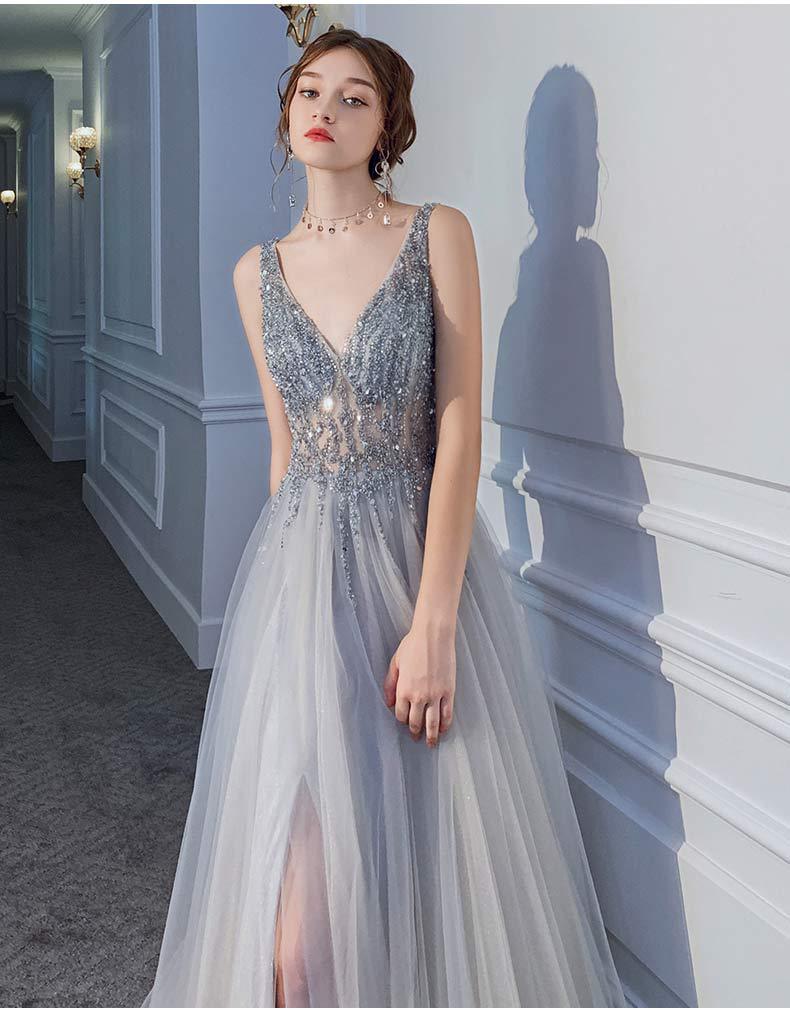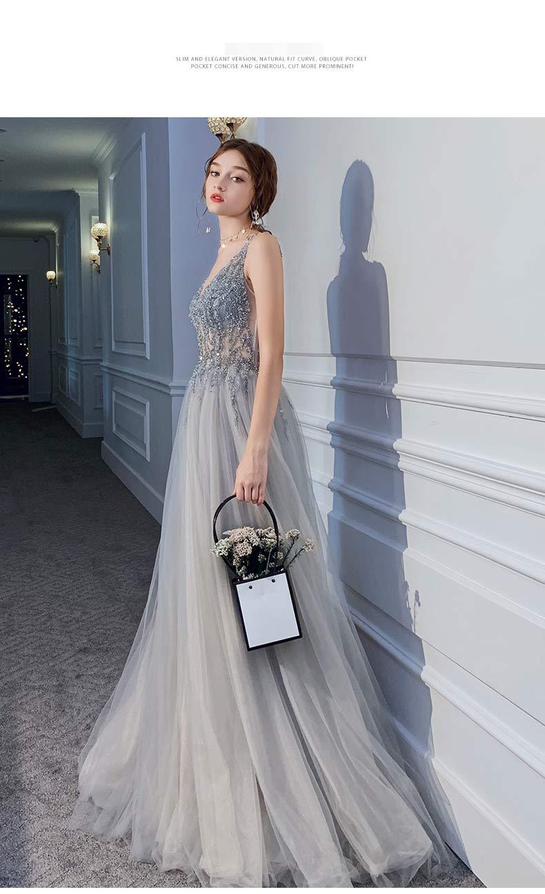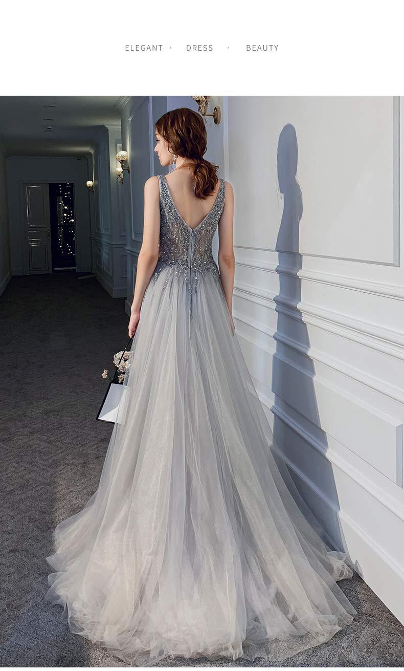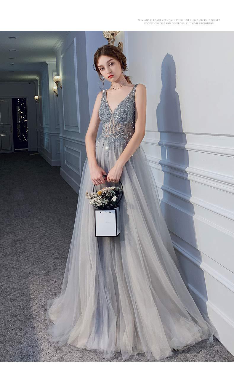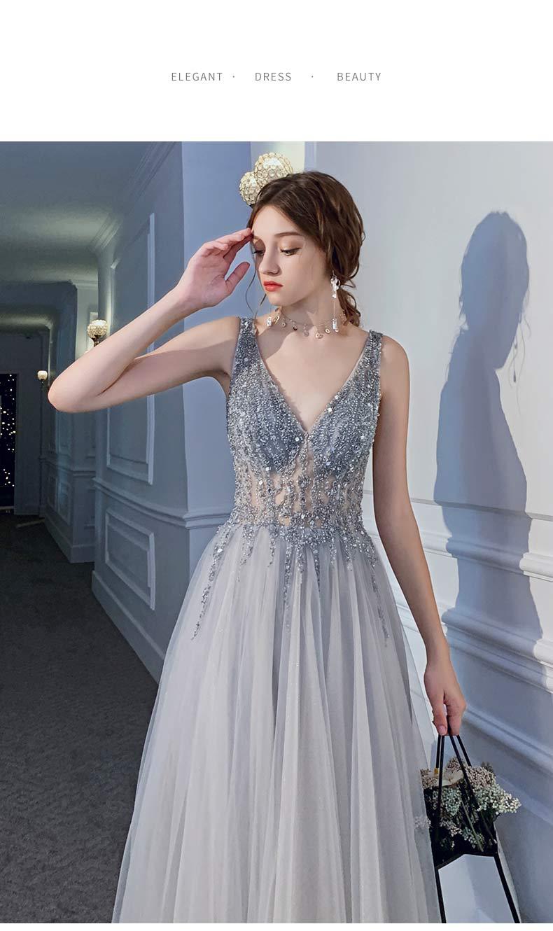 Vestido delgado con cuello en V, sexy sin espalda y con lentejuelas para mujer, para fiesta, fiesta de cumpleaños, banquete, reunión anual, vestido de noche