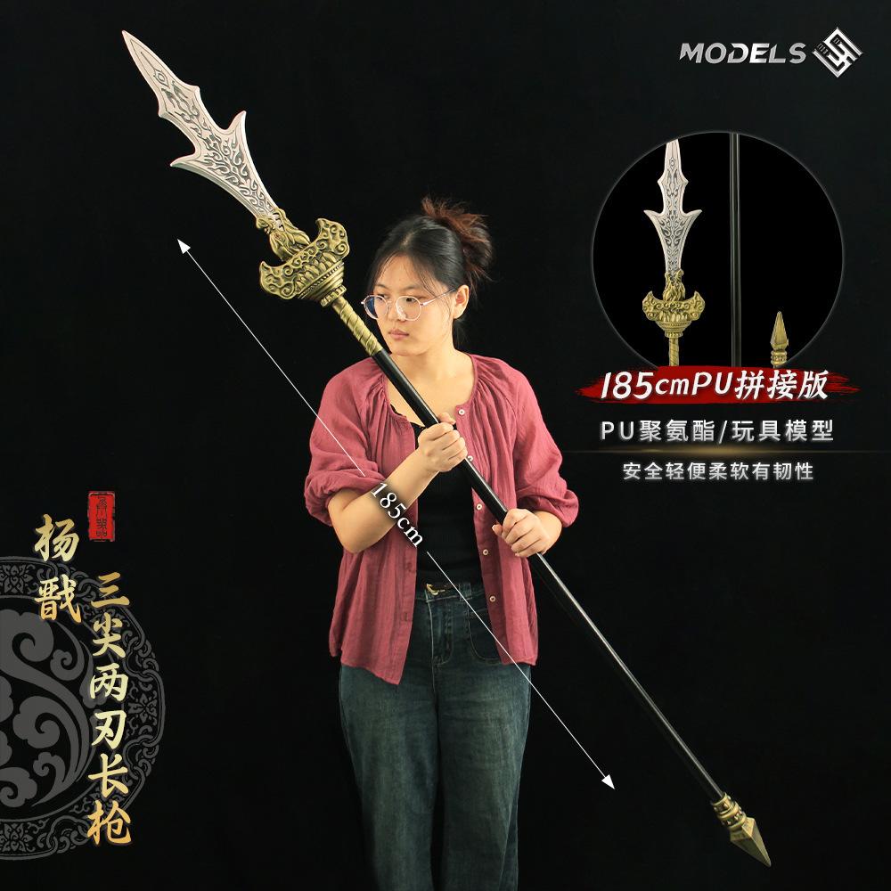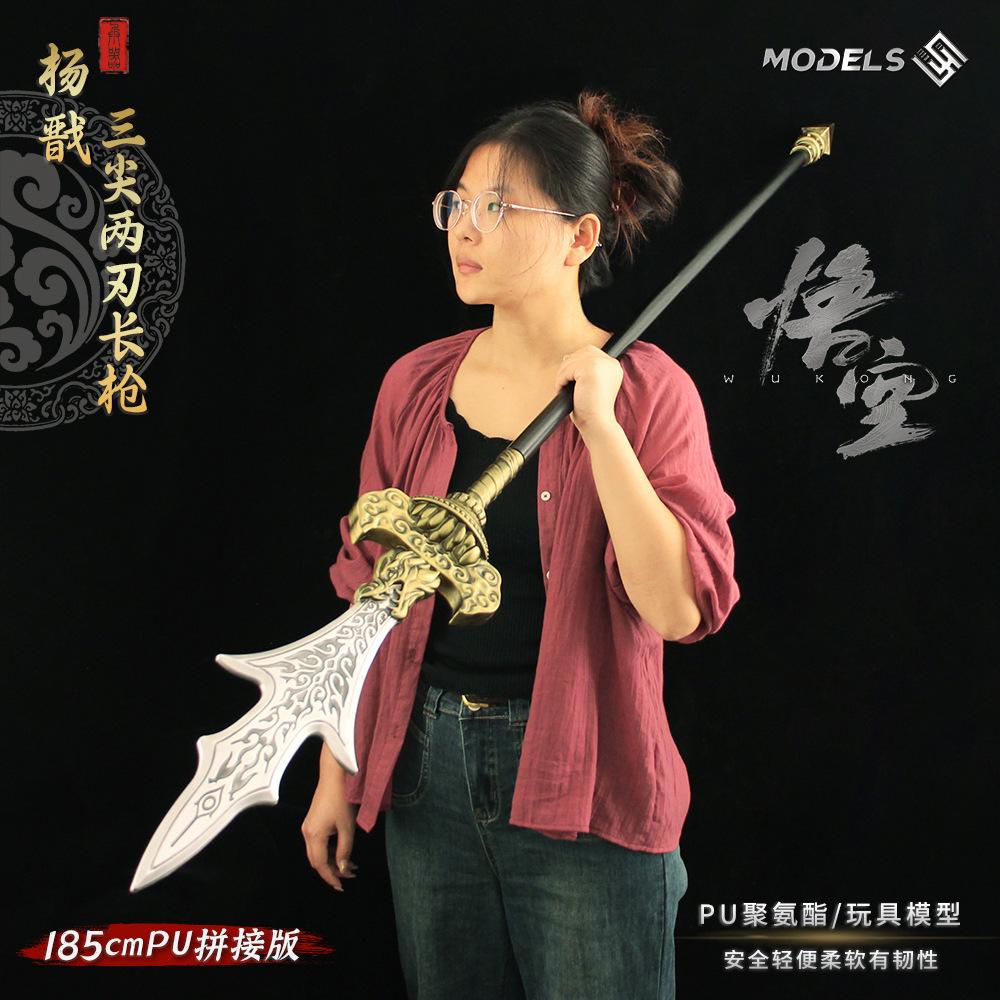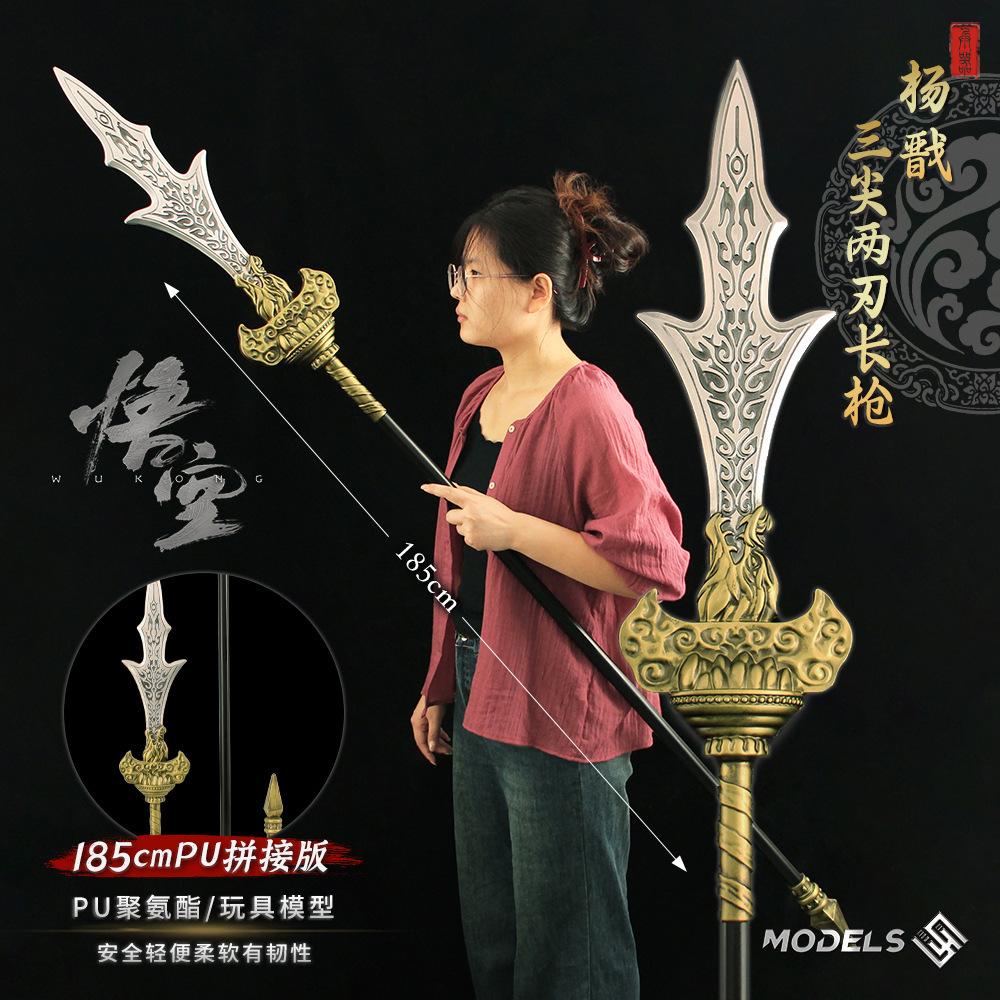 Wukong jogo arma real adereços 1:1 Yang Jian três pontas dois gumes Erlang Shen arma modelo PU brinquedo de montagem
