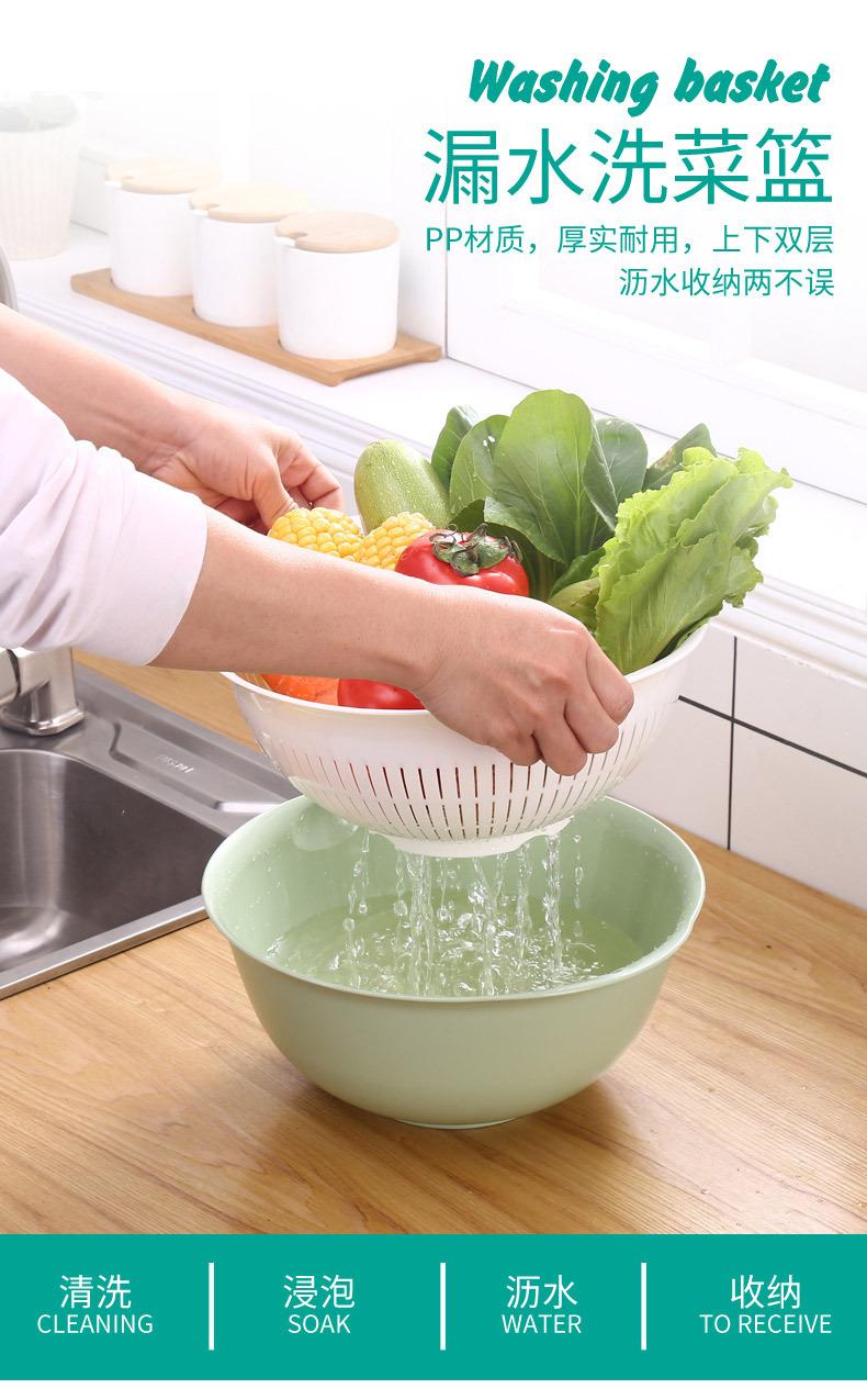 Cozinha plástico dupla camada de legumes cesto de lavagem cesta de drenagem arroz bacia de lavagem cesto de legumes prato de frutas moderno sala de estar prato de frutas