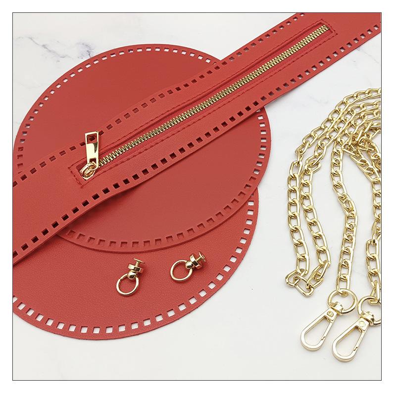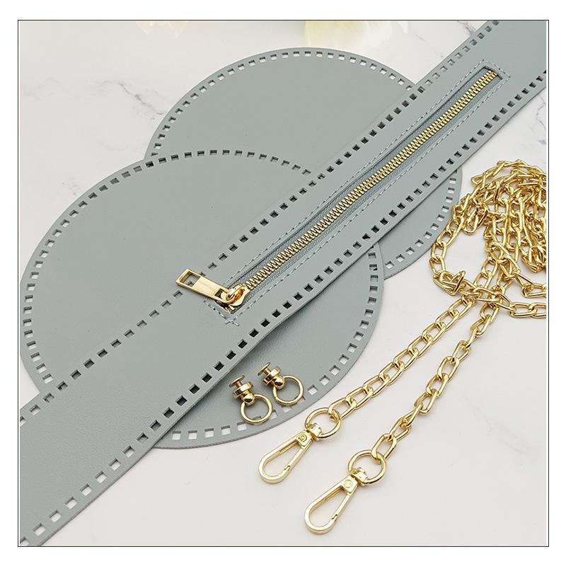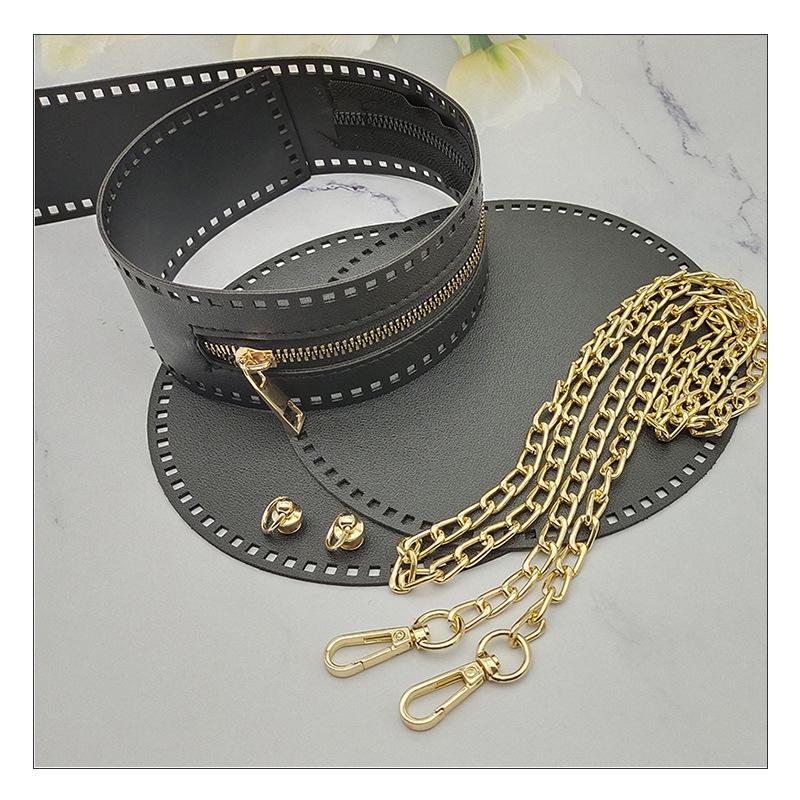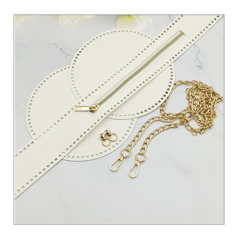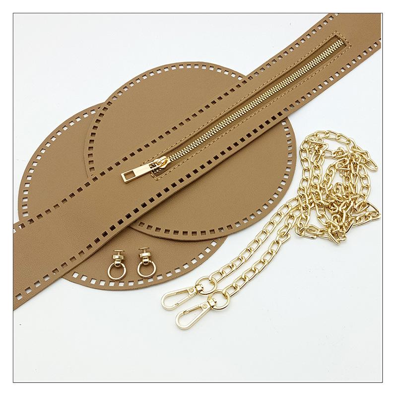 Conjunto bege de cinco peças (2 círculos + 1 zíper + 1 corrente + 1 par de fivelas)