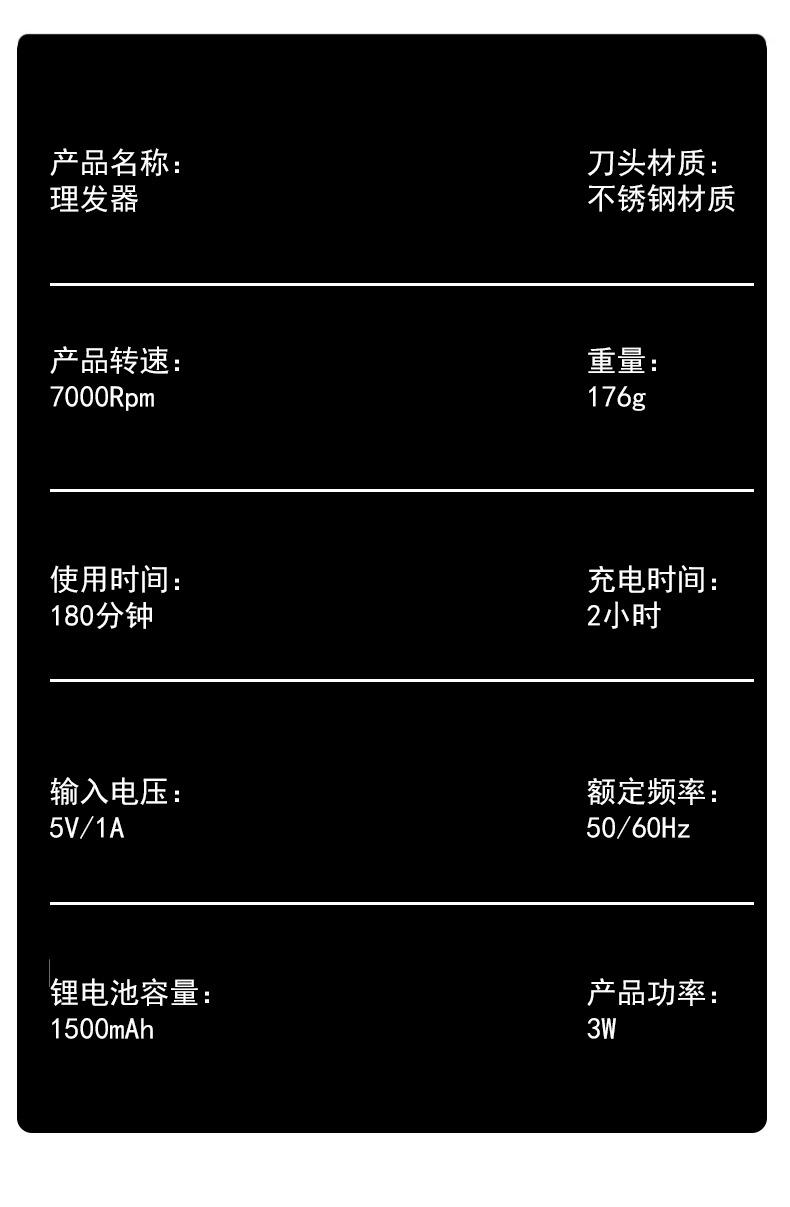 Accesorios: Cuatro peines (1.5/3/4.5/6 mm), un cepillo de limpieza, un cable USB