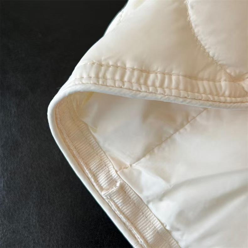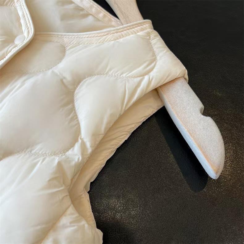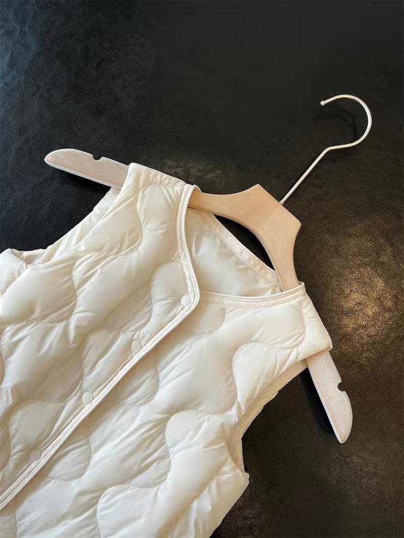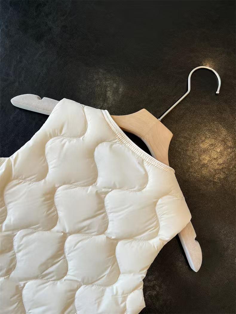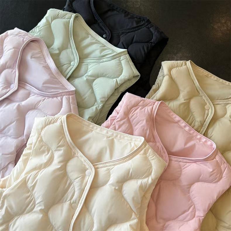 Este colete de plumas está disponível em seis cores, todas muito versáteis.