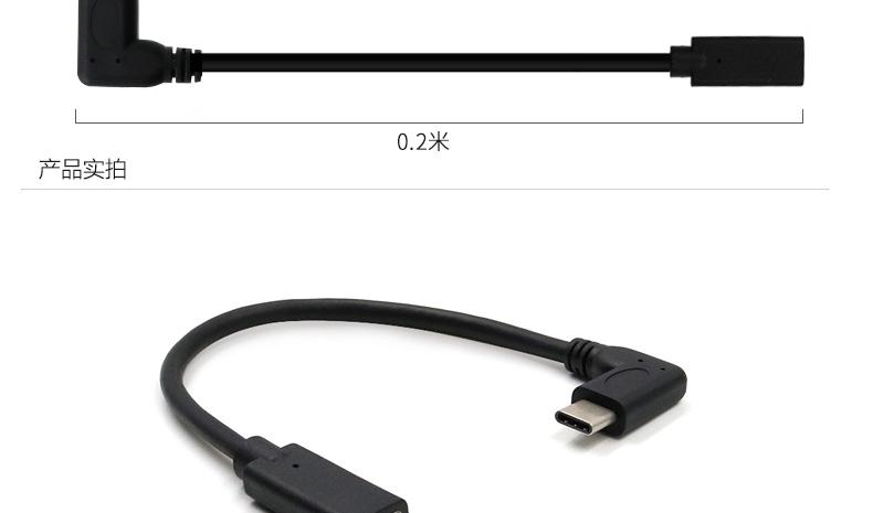 Nome do produto: Cabo de extensão de cotovelo de 90° USB3.1 Tipo C macho para fêmea