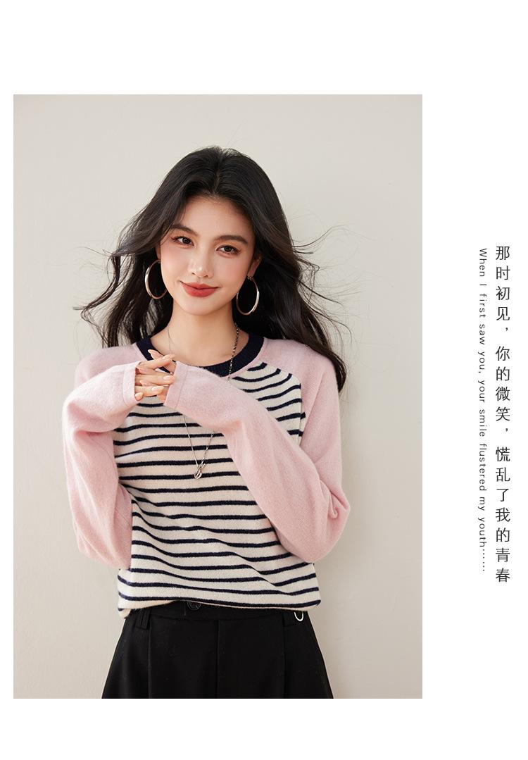Compre Outono 2024 Novo Contraste Cor Listrado Manga Raglan Suéter De Malha Estilo Coreano Estilo Preguiçoso Solto All-match Suéter Para Mulheres no atacado no Joom.pro